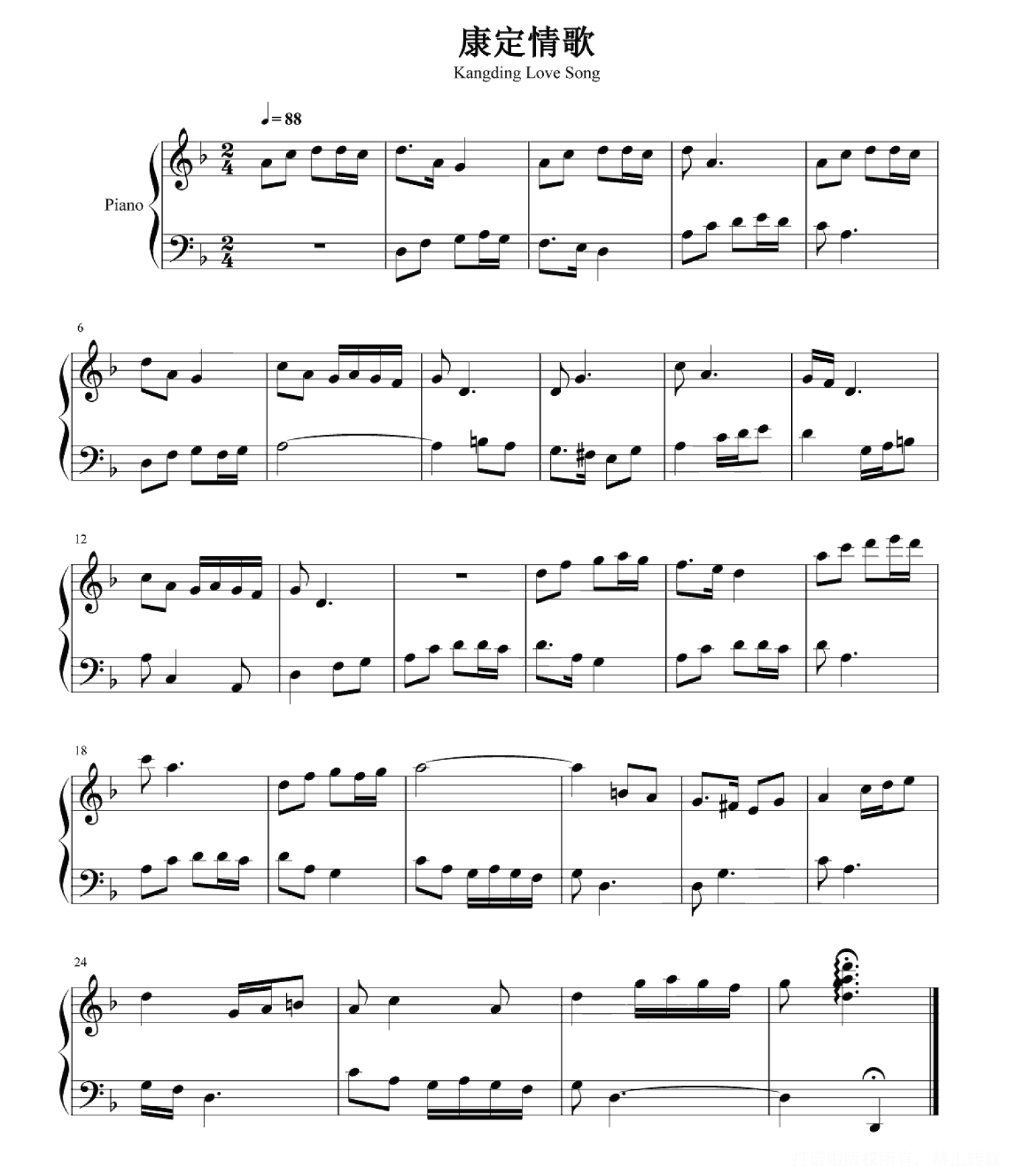 康定情歌钢琴谱 - 经典民歌