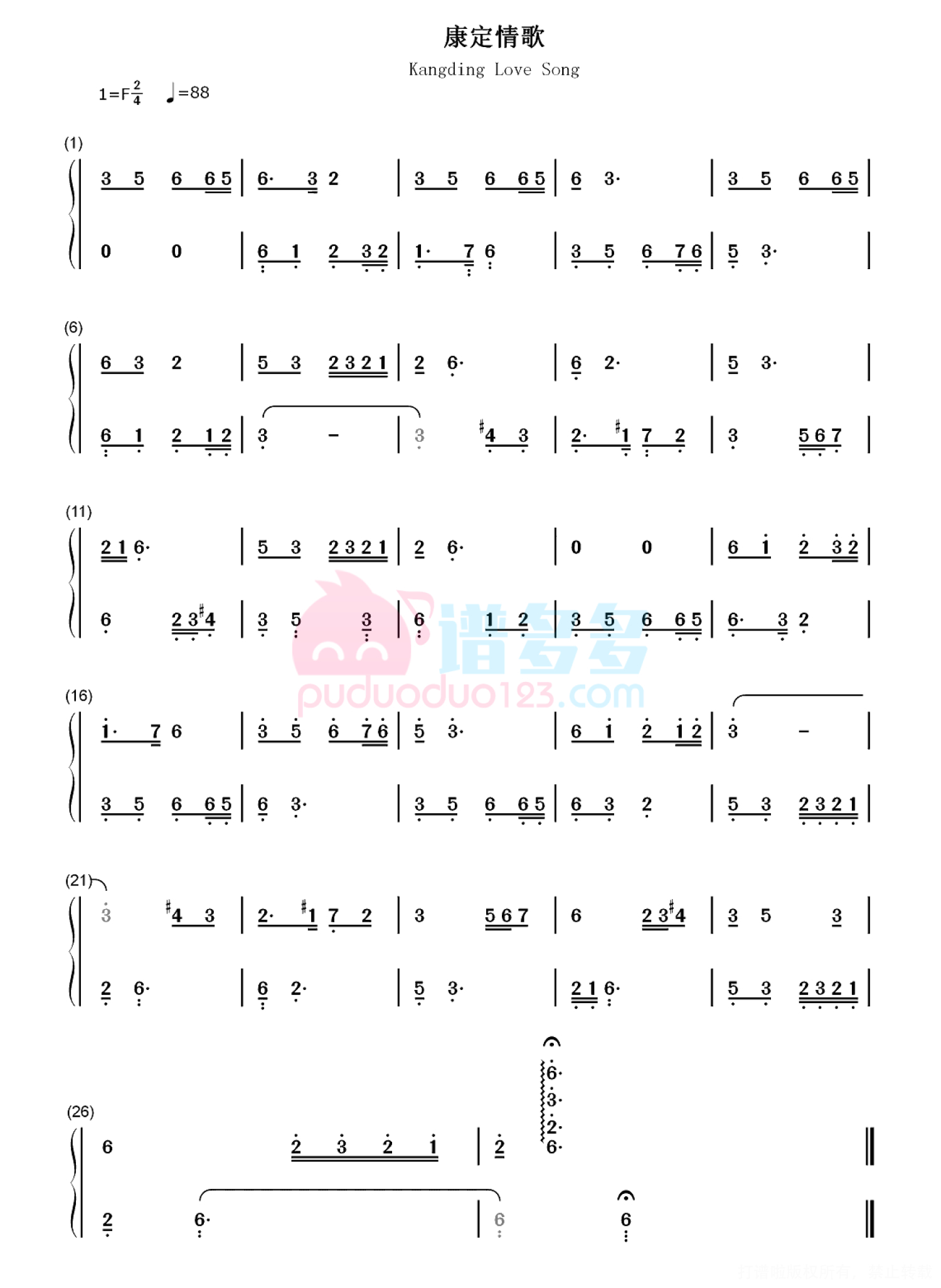 当前位置:琴谱网>钢琴谱>康定情歌
