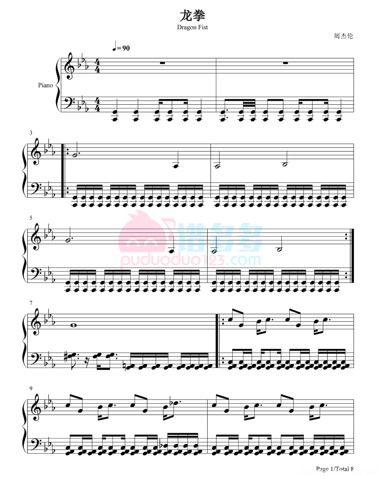 龙拳钢琴谱 - 周杰伦