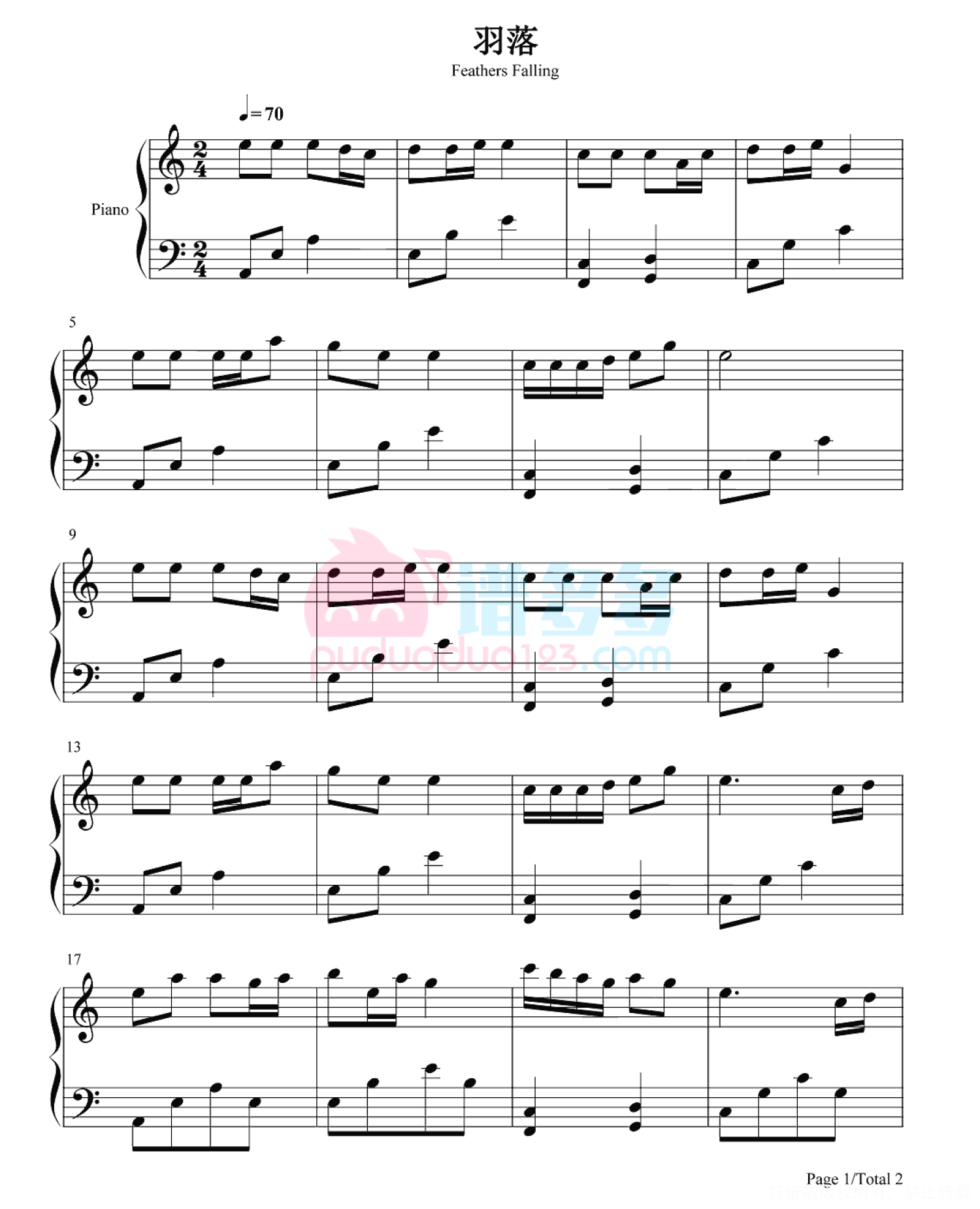 当前位置:琴谱网>钢琴谱>羽落