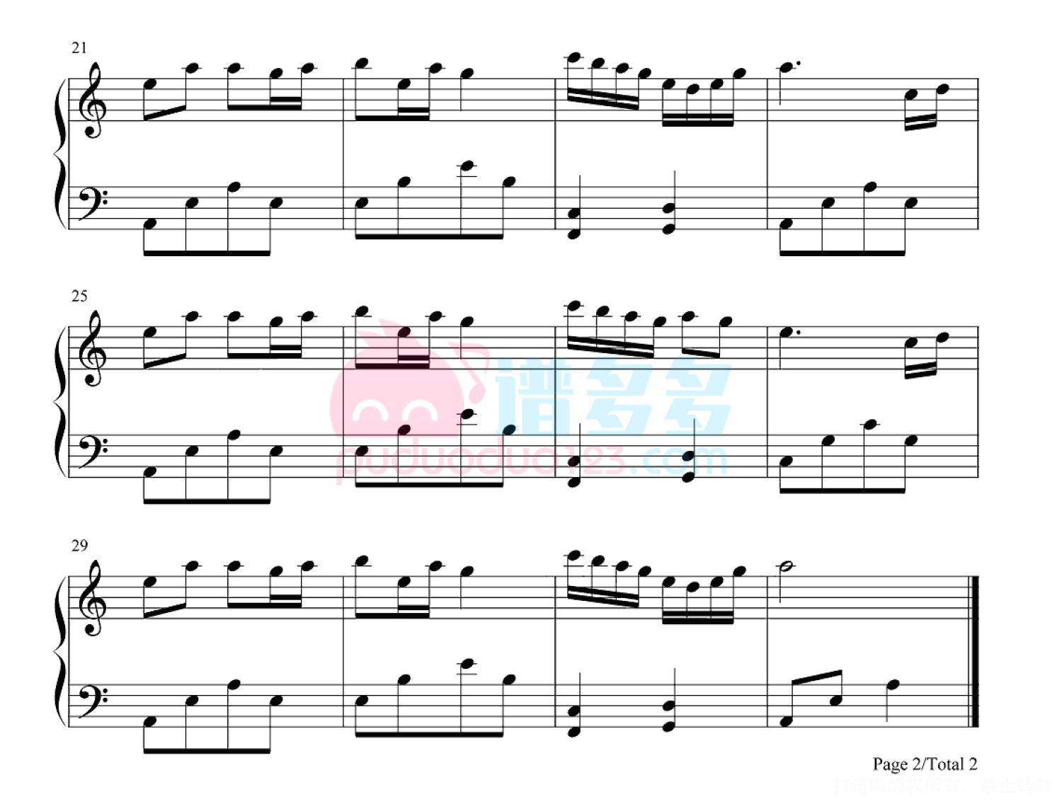 凡是琴谱网站内的版权保护水印,打印时,都会无水印。