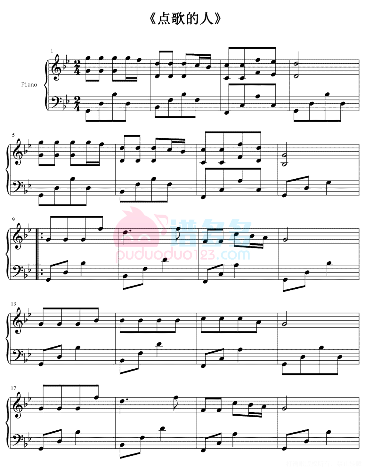 当前位置:琴谱网>钢琴谱>点歌的人