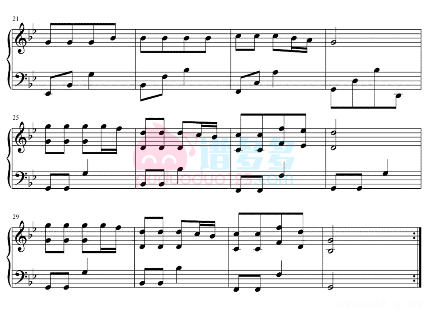 凡是琴谱网站内的版权保护水印,打印时,都会无水印。