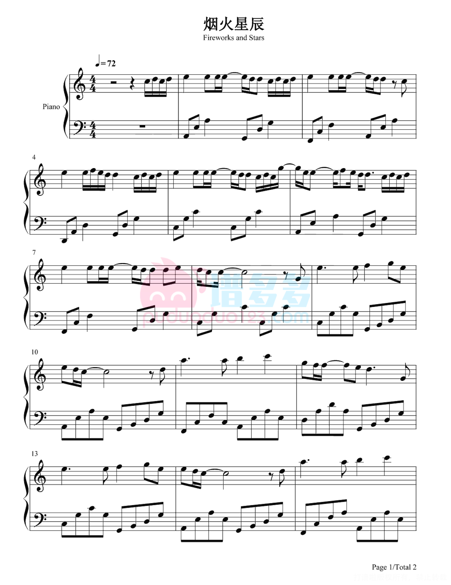 当前位置:琴谱网>钢琴谱>烟火星辰