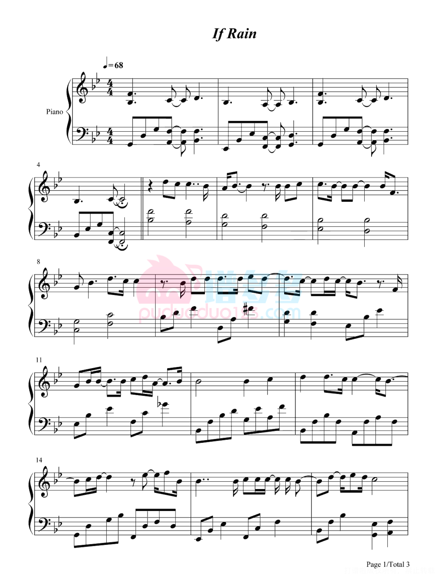 曲谱介绍: 本曲谱是由内地女歌手萨吉演唱《If Rain》的钢琴谱,五线谱完整版共3张PNG图高清图片谱。歌曲是青春成长治愈剧《以家人之名》的插曲。 萨吉一改往日的演唱方法,用最温柔细腻的声音来进行演唱,希望借此能唱出一种关爱着孩子的情感,让每一个人听到歌声里的最温柔的爱。 《以家人之名》这部质朴、温馨、暖心的家庭成长治愈剧如同一股清流,以情动人,赢得了观众青睐。正如该剧传递的主题——“家人会让彼此成为更好的人”。在缺乏沟通与理解,人际关系和情感习惯保持距离的当下,该剧描摹了一个“不是一家人,胜似一家人”的温馨家庭,启示人们要珍惜家人和幸福,用暖心的青春成长故事展现了生活的温度,传递出超越血缘的人间真情与大爱。
