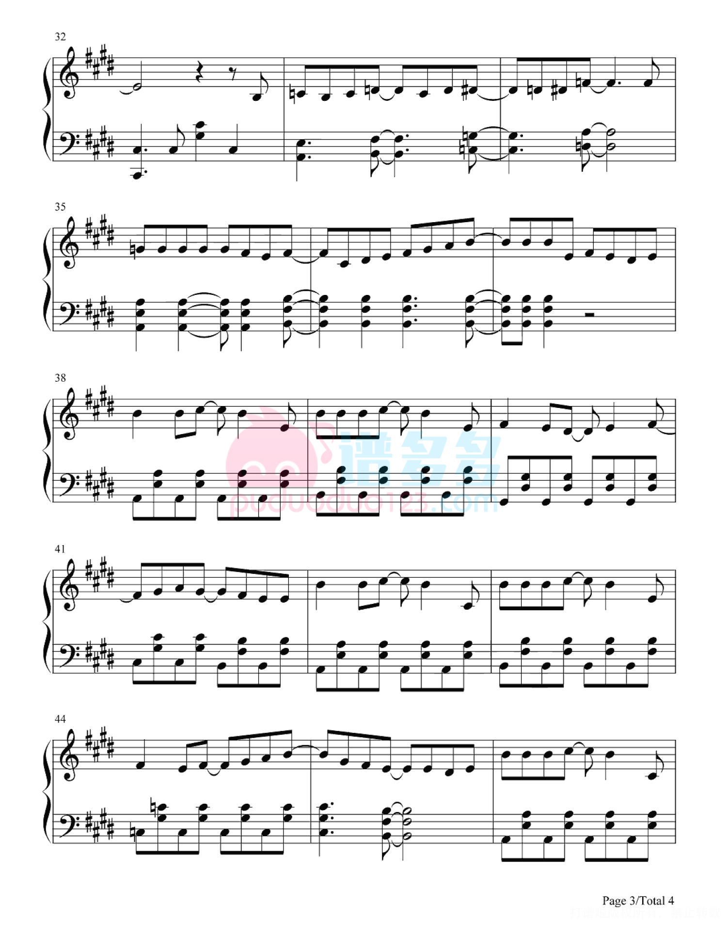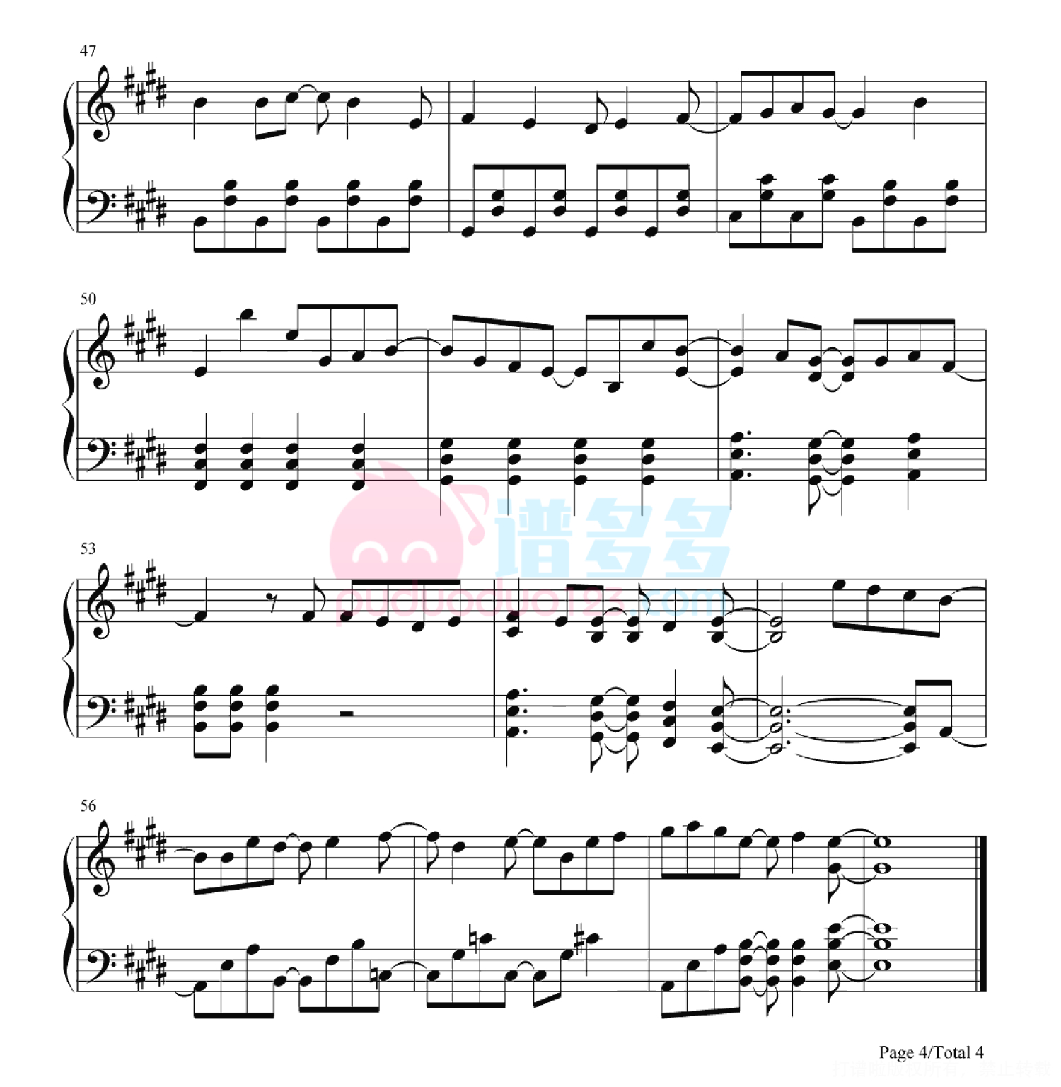 凡是琴谱网站内的版权保护水印,打印时,都会无水印。