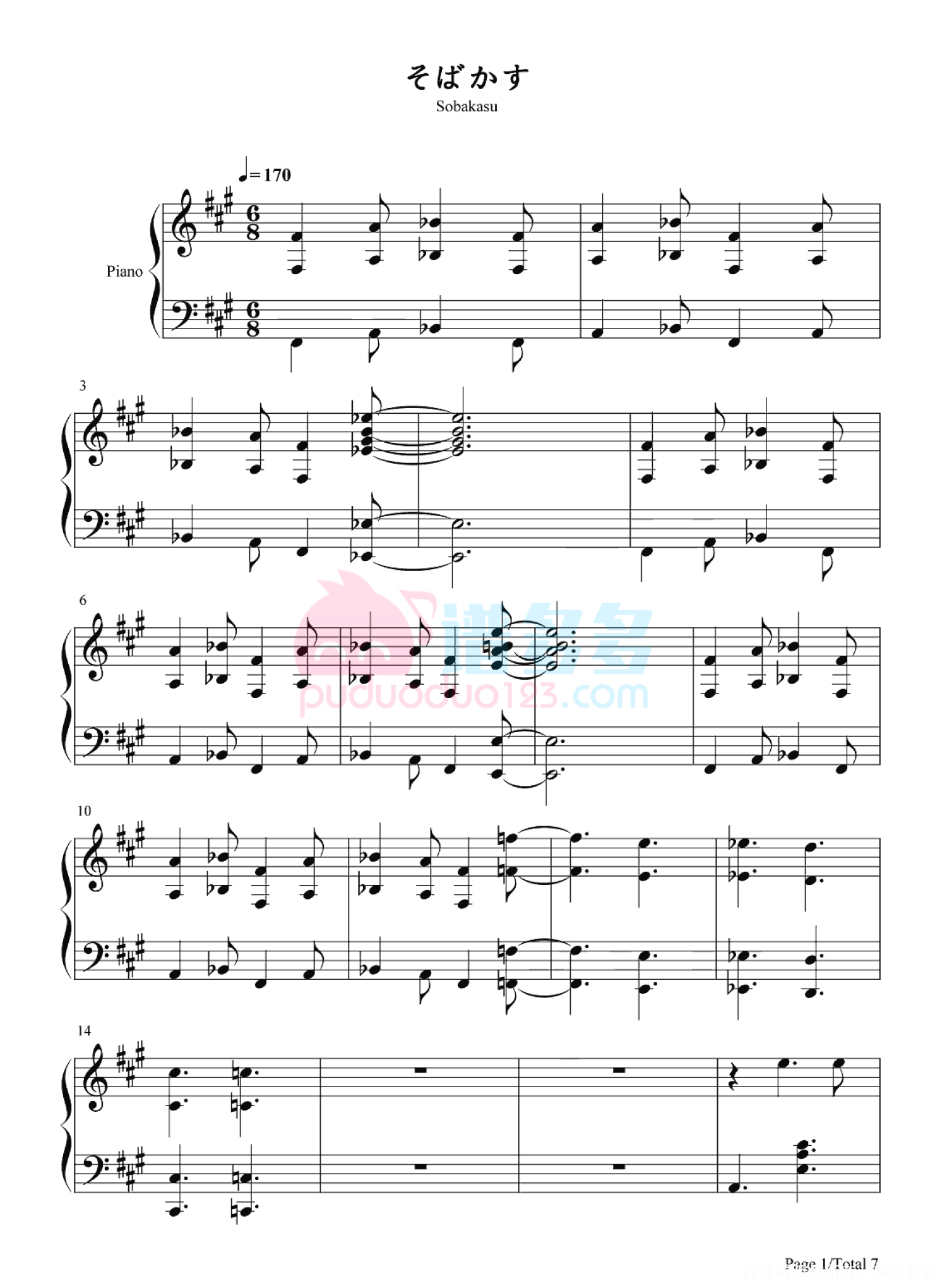 曲谱介绍: 本曲谱是是富士电视台电视动画《浪客剑心》初代片头主题曲《そばかす》的钢琴谱,五线完整版共7张PNG图高清图片谱。歌曲中文名《雀斑》,原唱者JUDY AND MARY在解散之前,唯一在Oricon上赢得第1名、以及唯一的百万销量单曲。 关于该歌曲创作的起源,是从突然担任的经纪人提出决定与浪客剑心动画进行商业搭配,说要在三天内写出一首歌。而得知这项消息的JUDY AND MARY当时没有办法跟经纪人说是什么作品,所以这首歌的主题来自于所有成员都知道的动画作品《小甜甜》。因此,JUDY AND MARY的所有成员知道是要为这部以时代剧为题材的动画录制一首片头主题曲而感到惊讶。根据成员YUKI表示,其制作的目的要挑战强大力量的崭新歌唱方式。