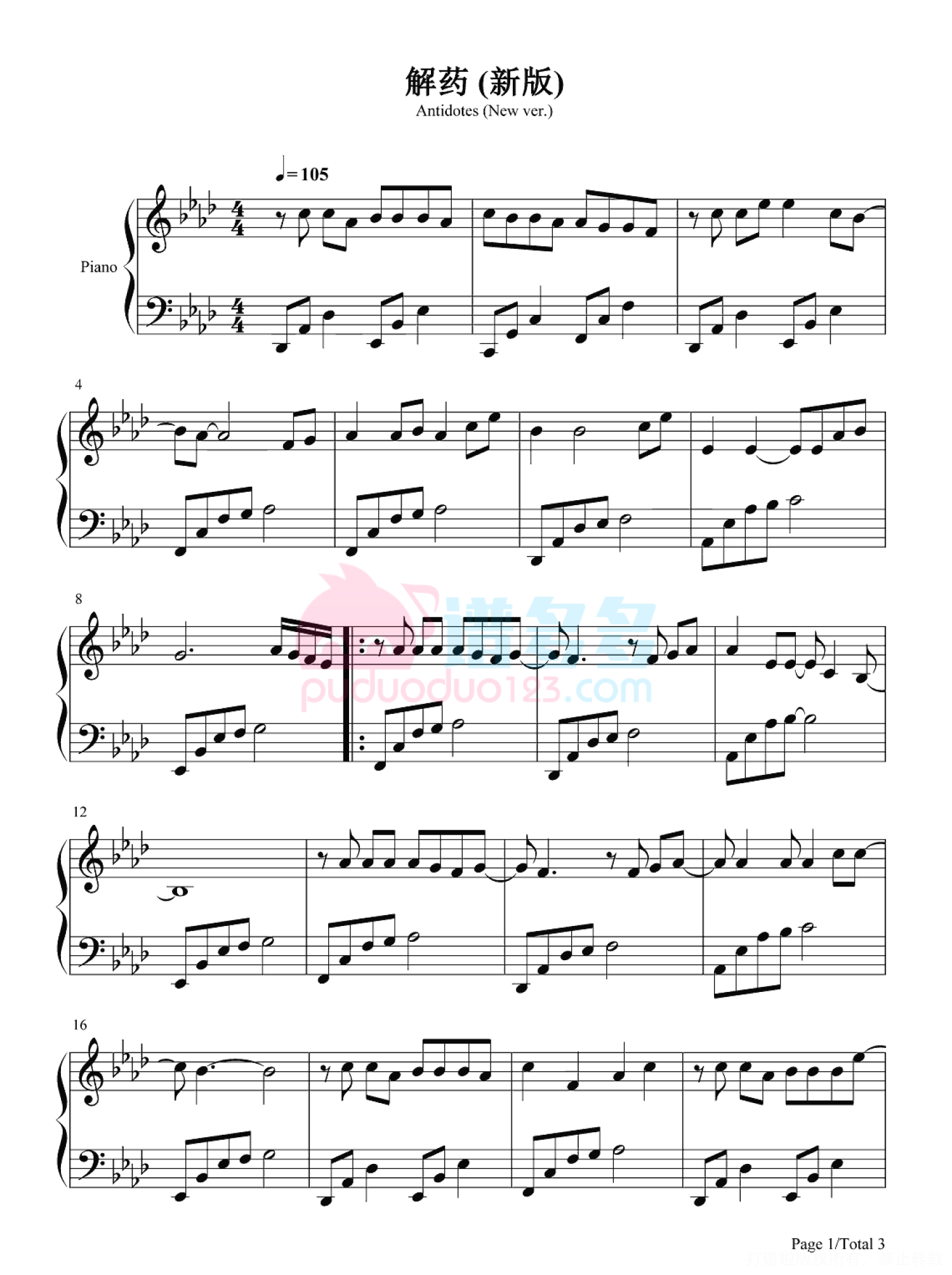 解药钢琴谱 - 一碗老于