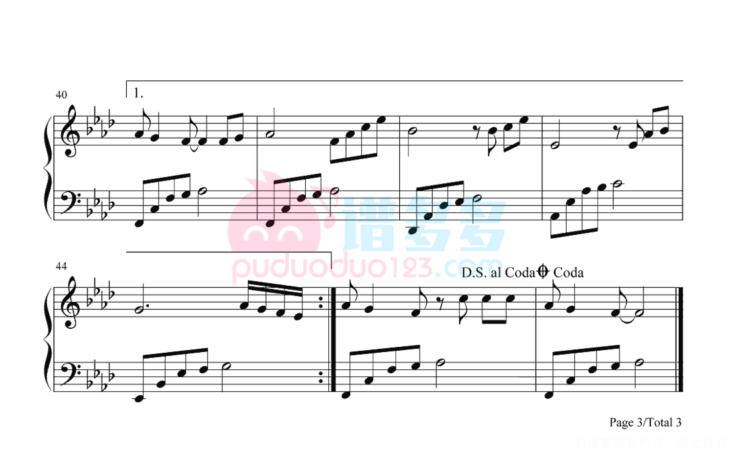 凡是琴谱网站内的版权保护水印,打印时,都会无水印。