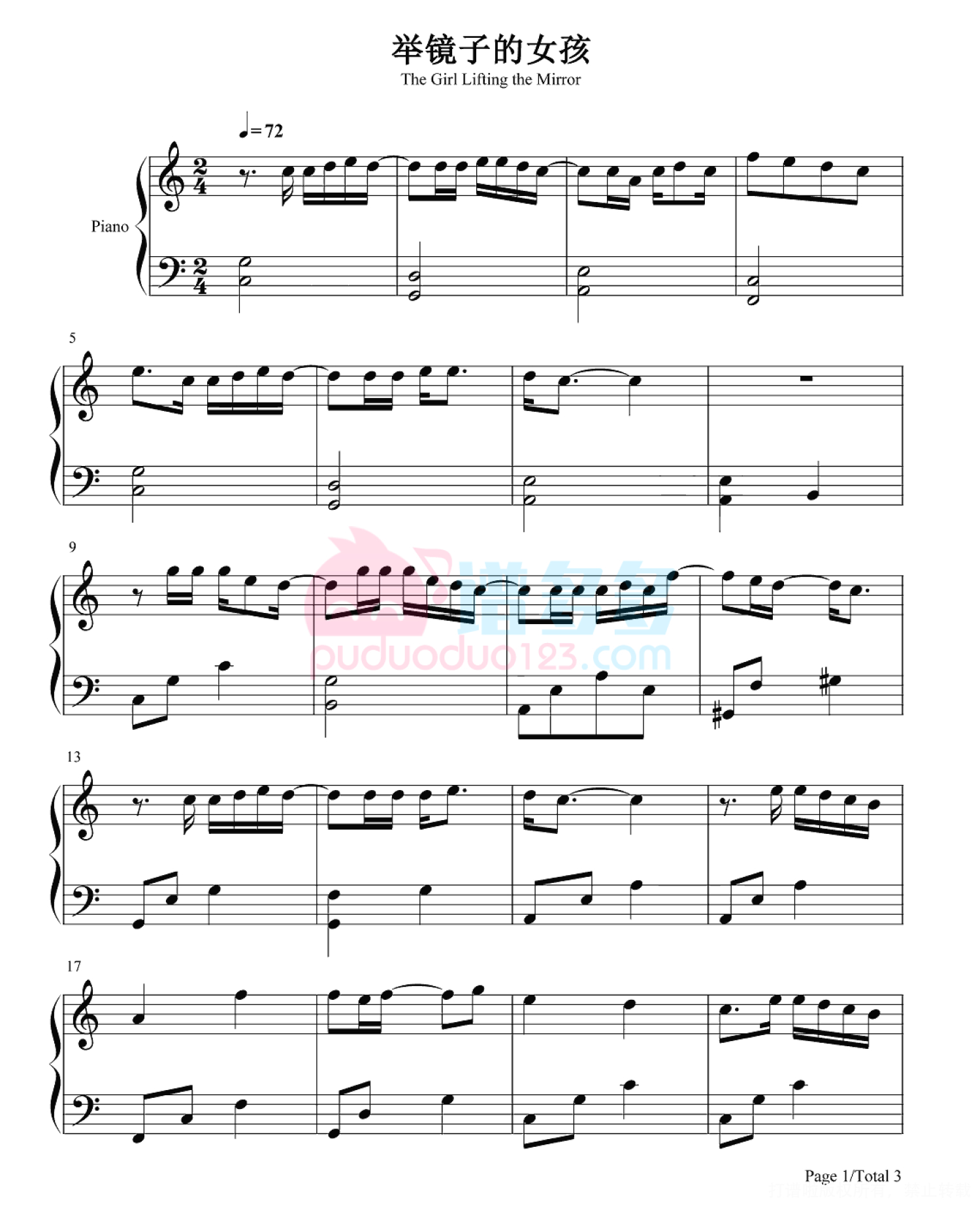 当前位置:琴谱网>钢琴谱>举镜子的女孩