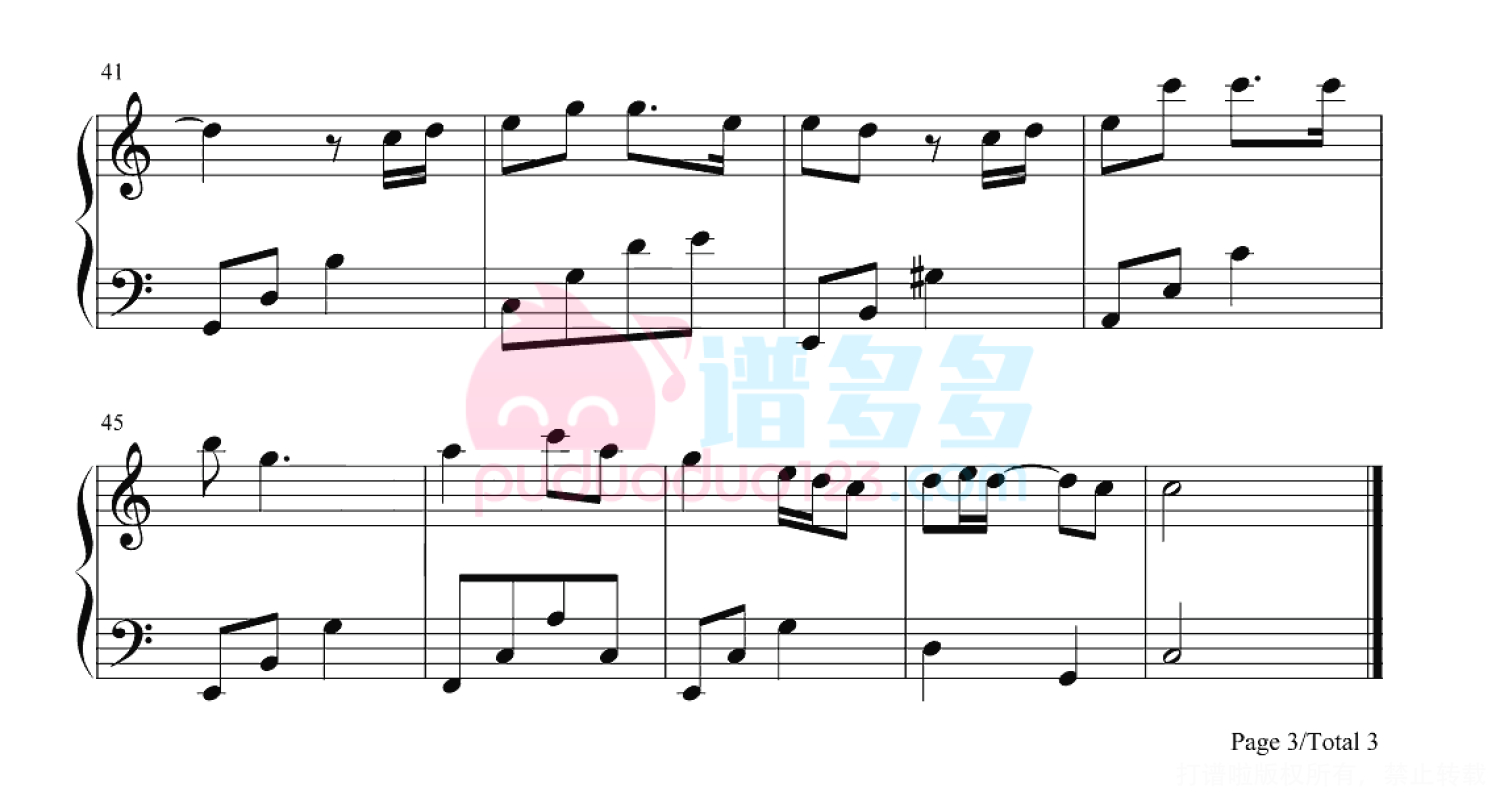 凡是琴谱网站内的版权保护水印,打印时,都会无水印。