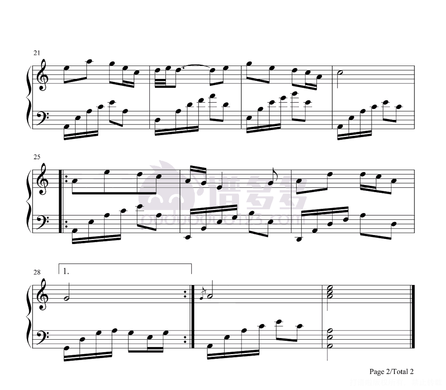 凡是琴谱网站内的版权保护水印,打印时,都会无水印。