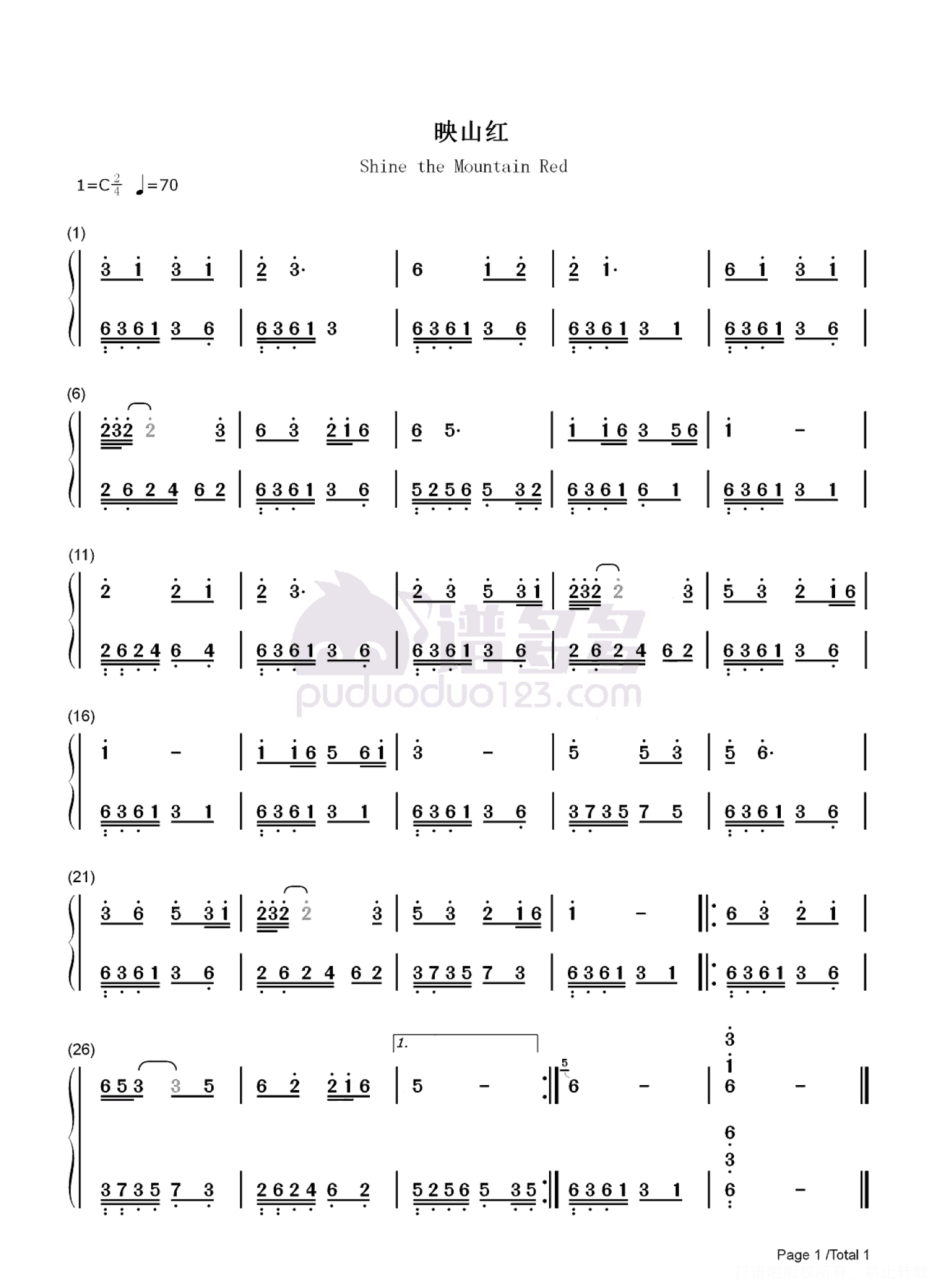 当前位置:琴谱网>钢琴谱>映山红