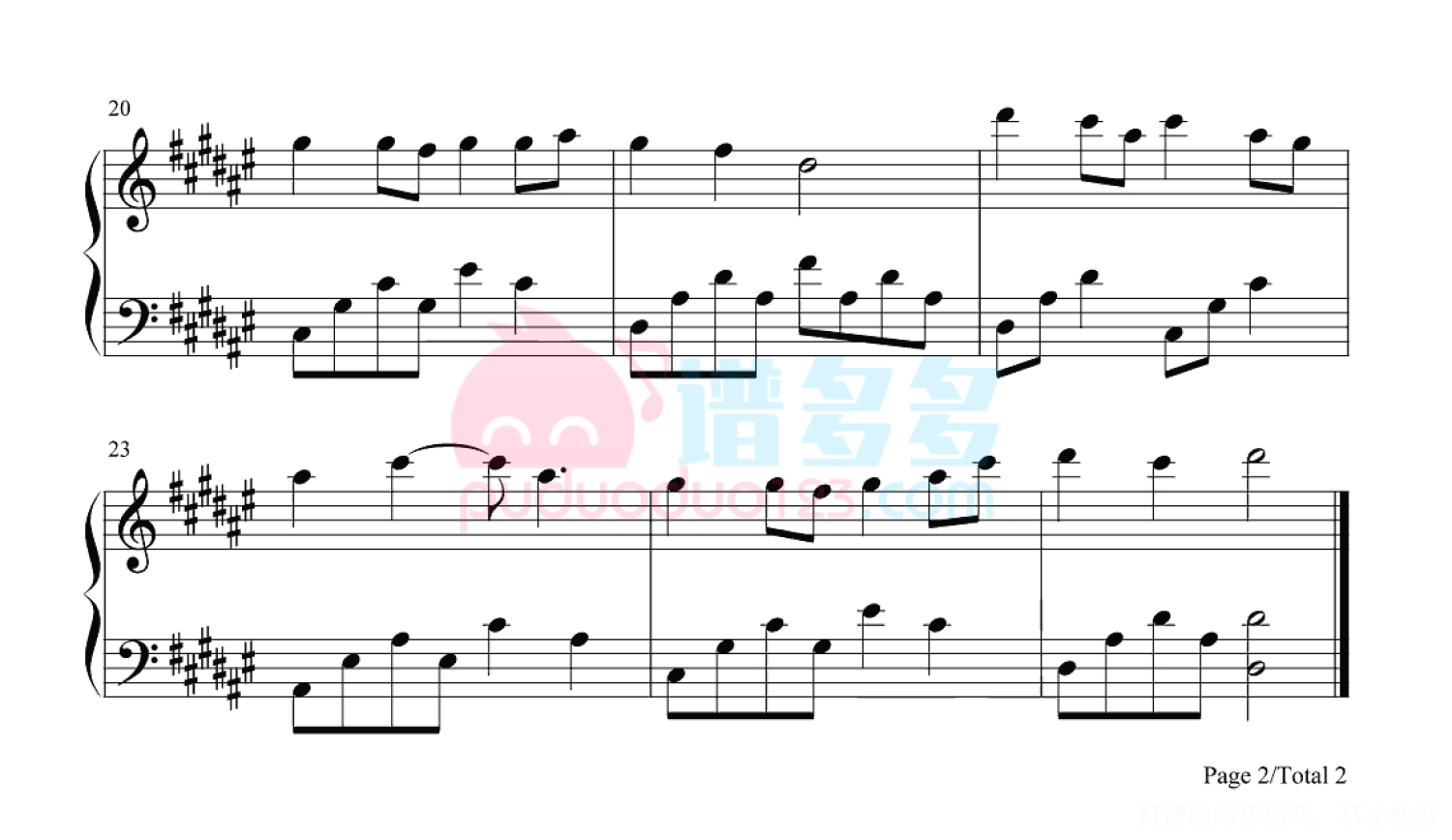 凡是琴谱网站内的版权保护水印,打印时,都会无水印。