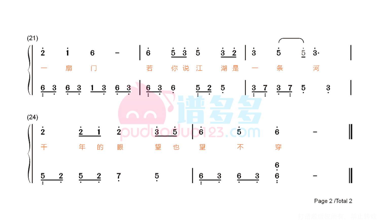 琴谱网尊重作者版权,不会私自去掉作者提供的水印,此类图谱如需去掉水印,请自行去除后,通过站内自助上传打印即可。