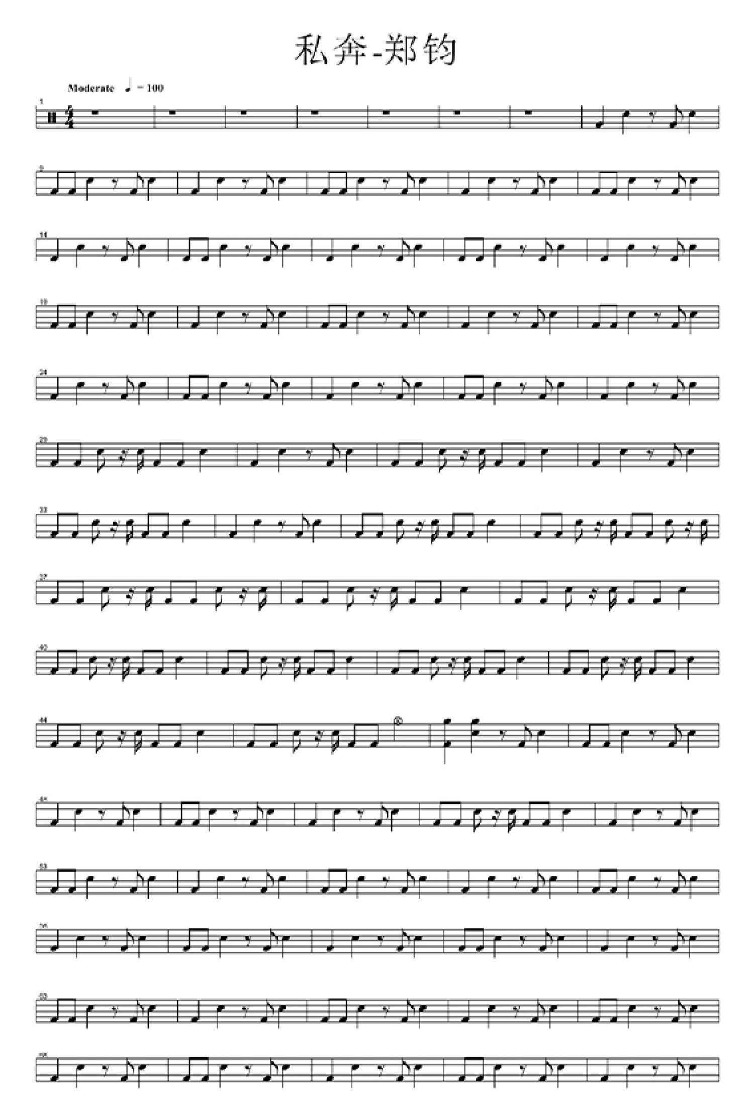 曲谱介绍: 《私奔》是由郑钧作词、作曲并演唱的歌曲,收录于郑钧2006年6月19日发行的第六张专辑《长安长安》中。此鼓谱曲速100