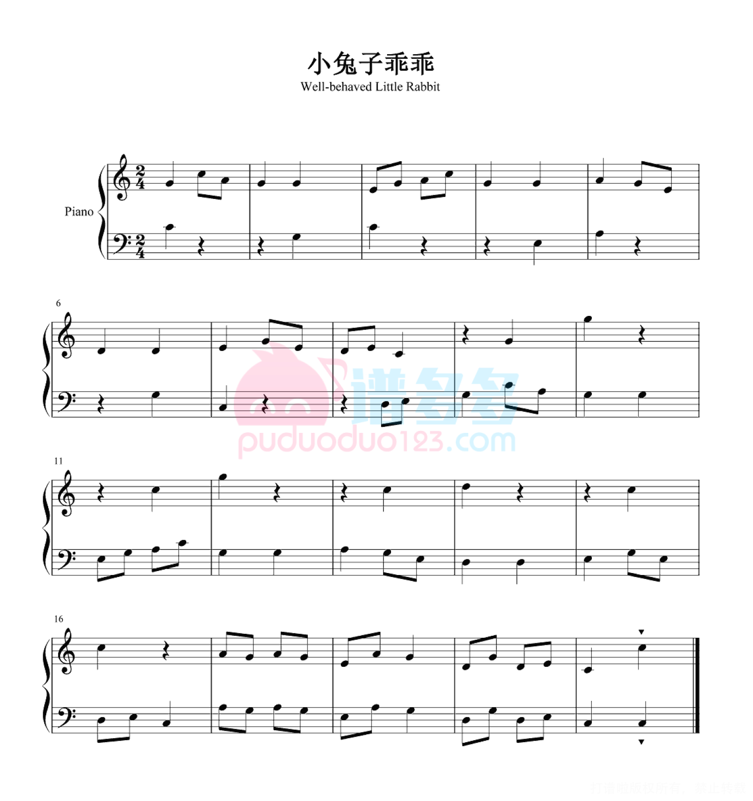 当前位置:琴谱网>钢琴谱>小兔子乖乖