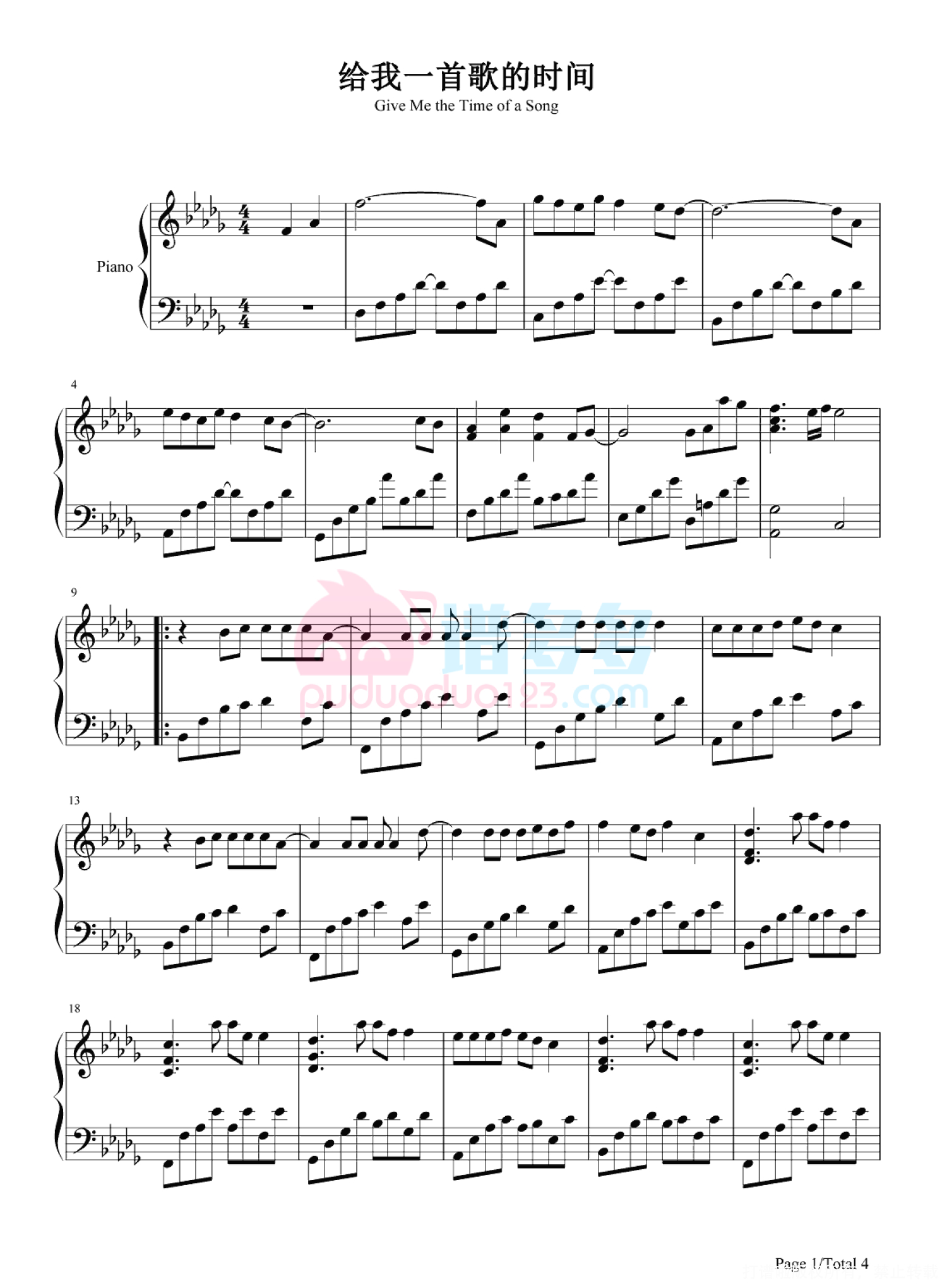 当前位置:琴谱网>钢琴谱>给我一首歌的时间