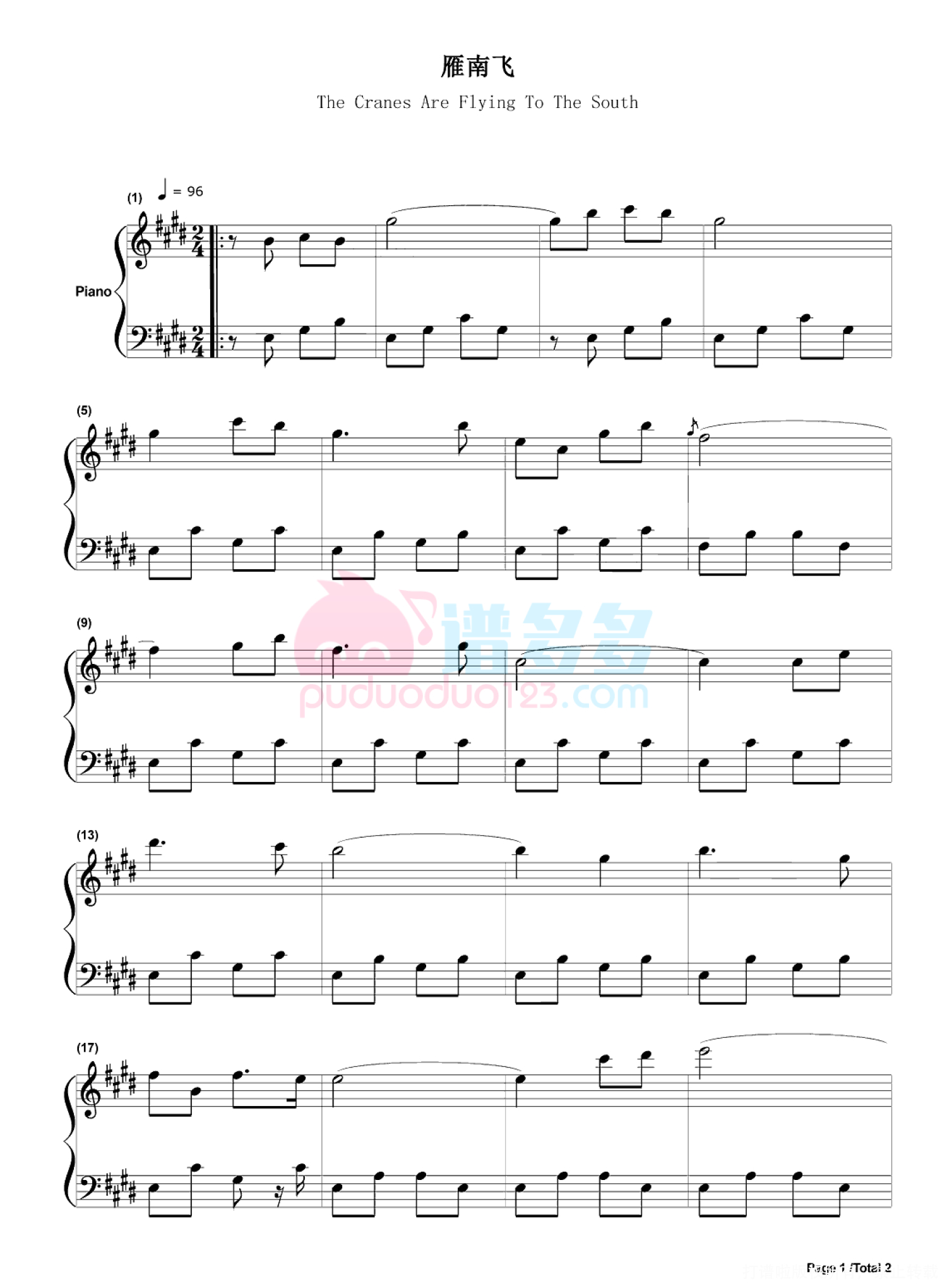 雁南飞钢琴谱 - 单秀荣