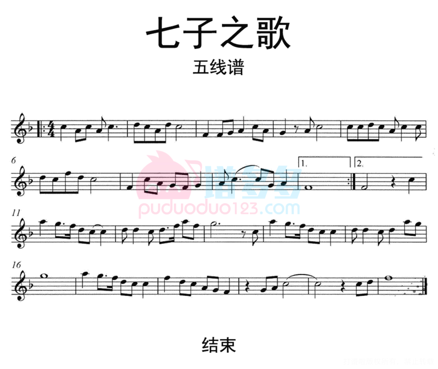七子之歌钢琴谱