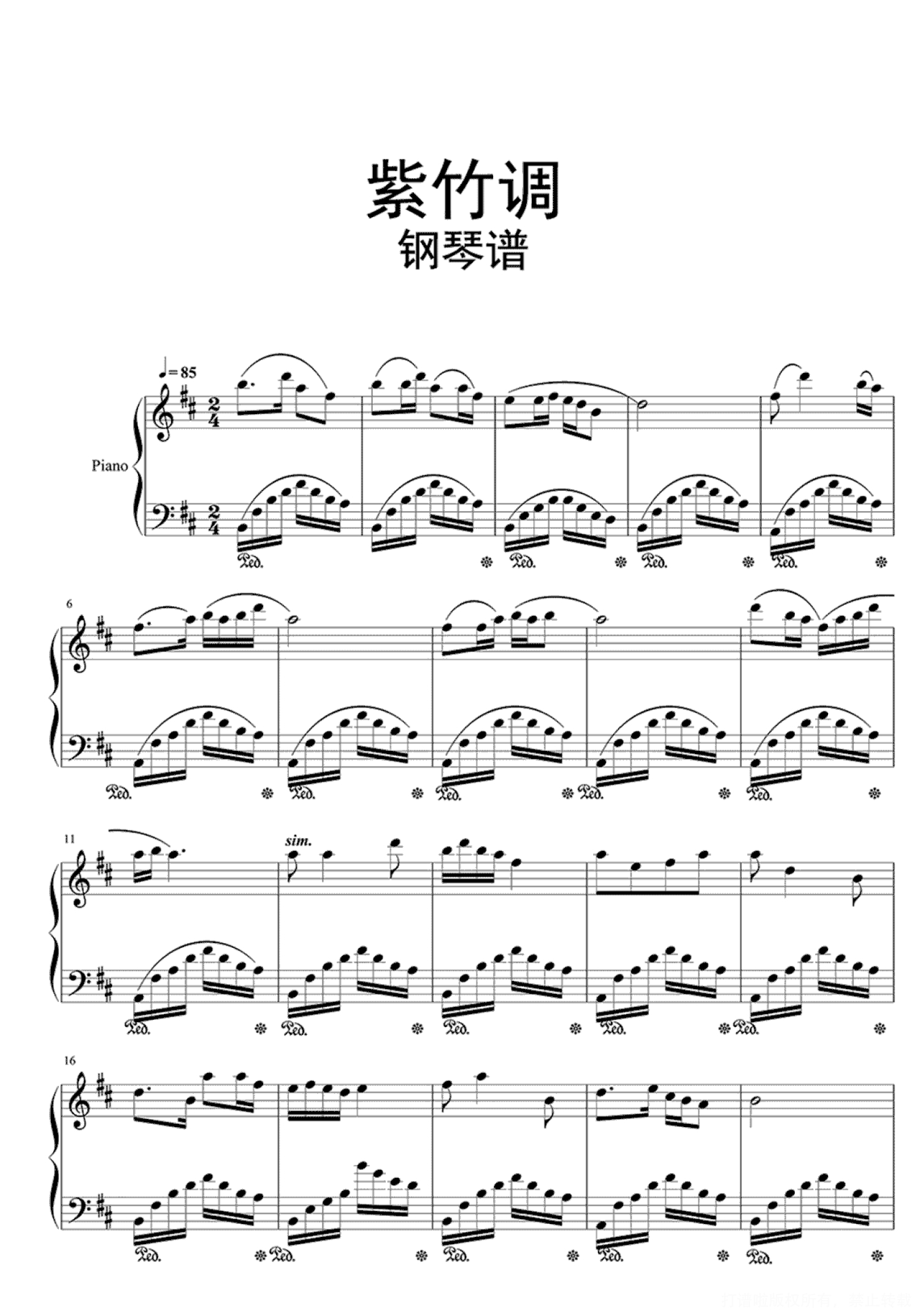 紫竹调钢琴谱