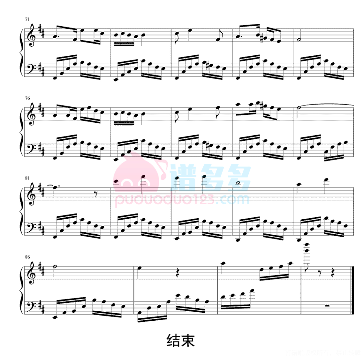 凡是琴谱网站内的版权保护水印,打印时,都会无水印。