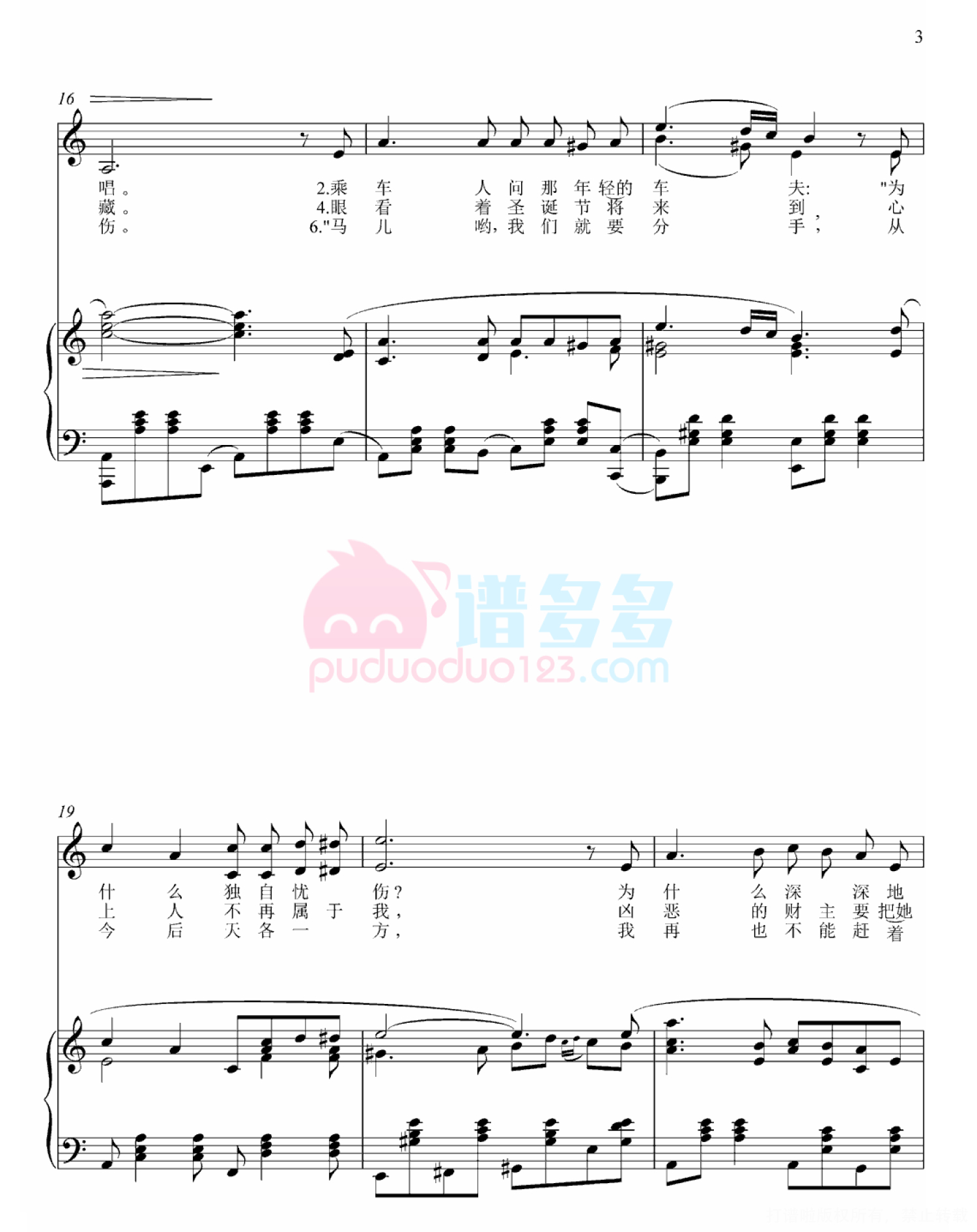 三套车钢琴谱 - 俄罗斯民歌