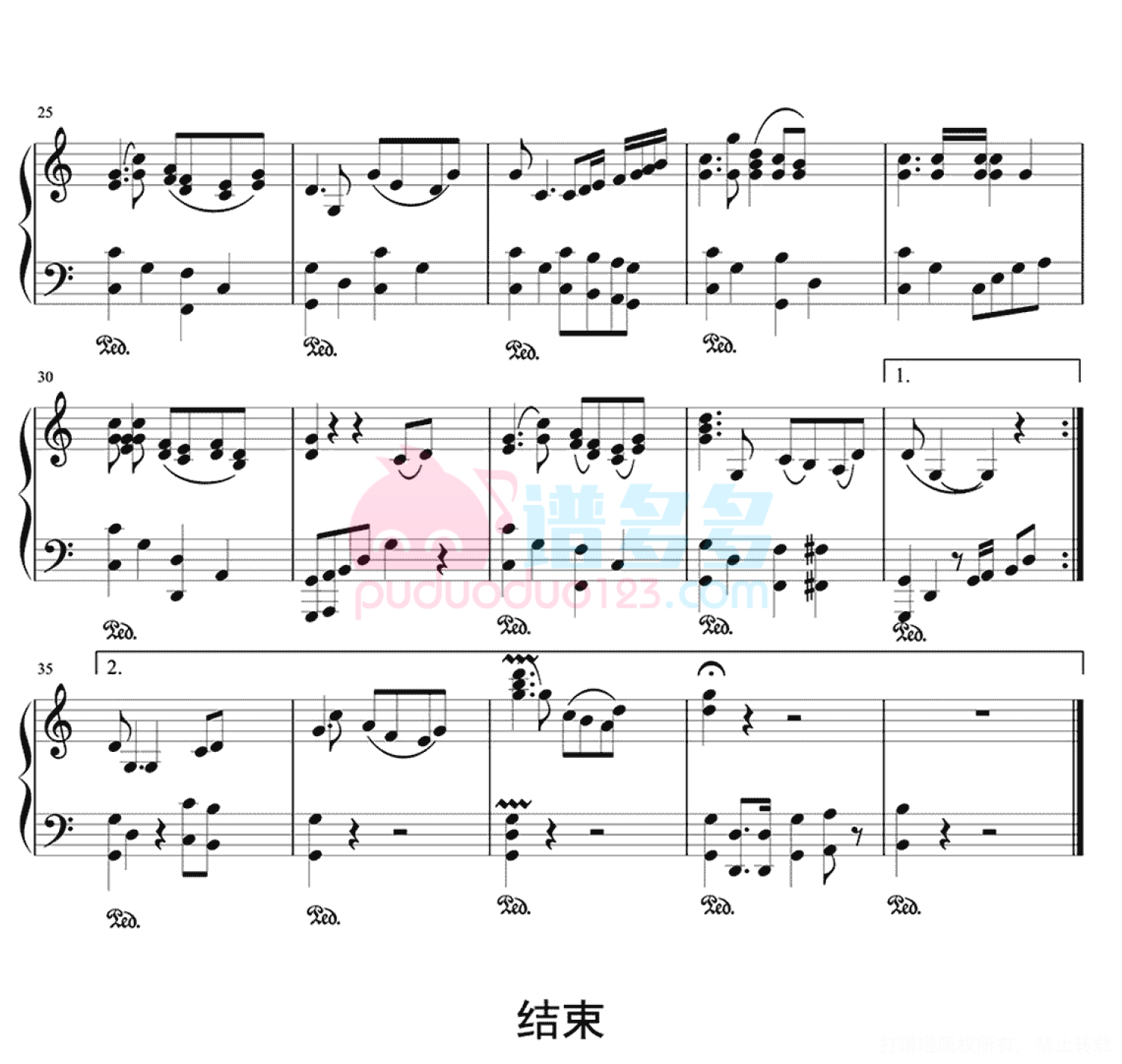 凡是琴谱网站内的版权保护水印,打印时,都会无水印。