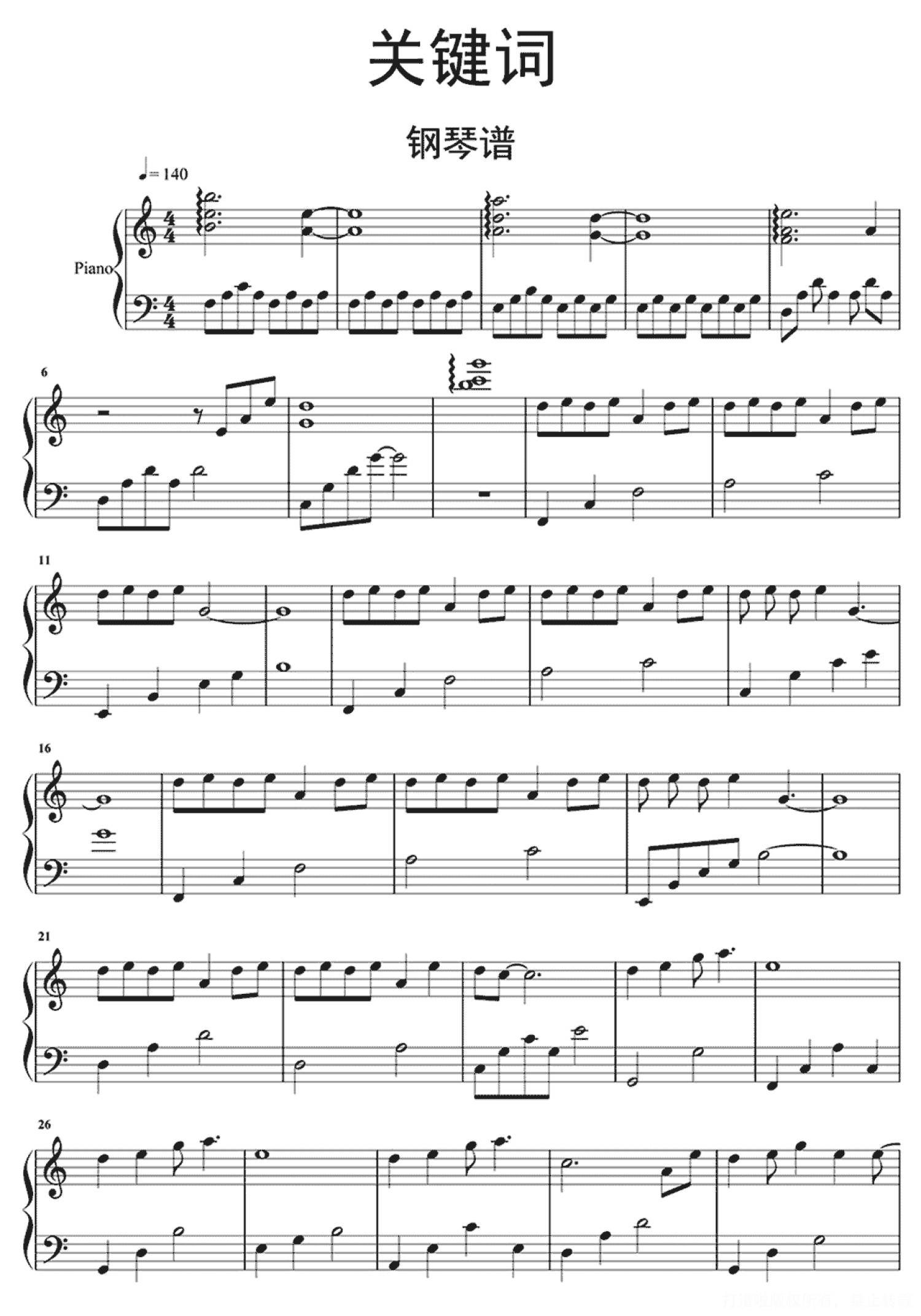 曲谱介绍: 林俊杰《关键词》钢琴谱,由谱友精心编配制谱,完整版共4张PNG格式图片五线谱。除了《关键词》高清版钢琴谱,打谱啦还收录了林俊杰更多热门歌曲不同类型或格式的曲谱,欢迎您浏览及分享。