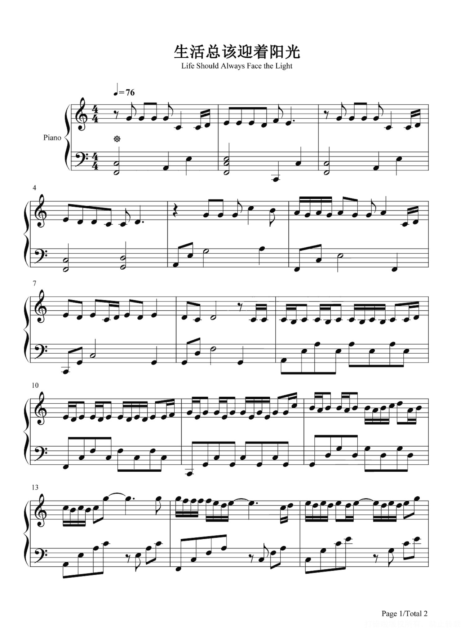 当前位置:琴谱网>钢琴谱>生活总该迎着光亮