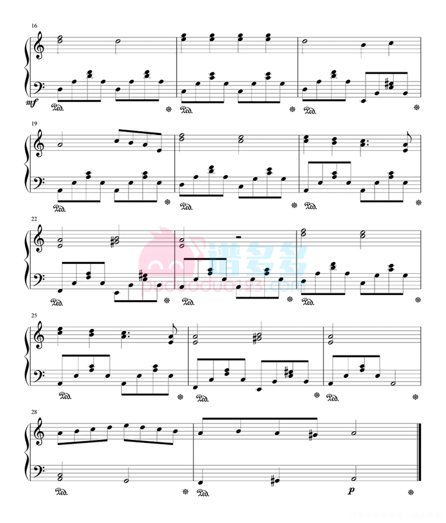 凡是琴谱网站内的版权保护水印,打印时,都会无水印。