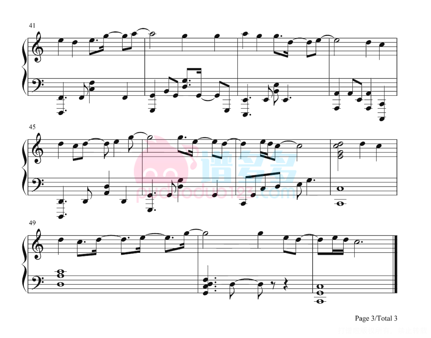 凡是琴谱网站内的版权保护水印,打印时,都会无水印。