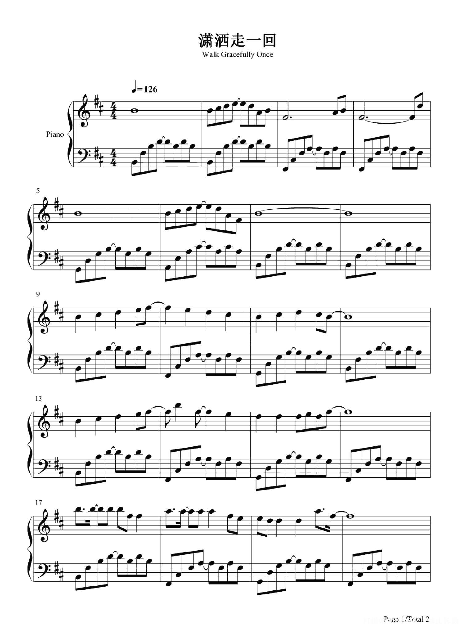 当前位置:琴谱网>钢琴谱>潇洒走一回