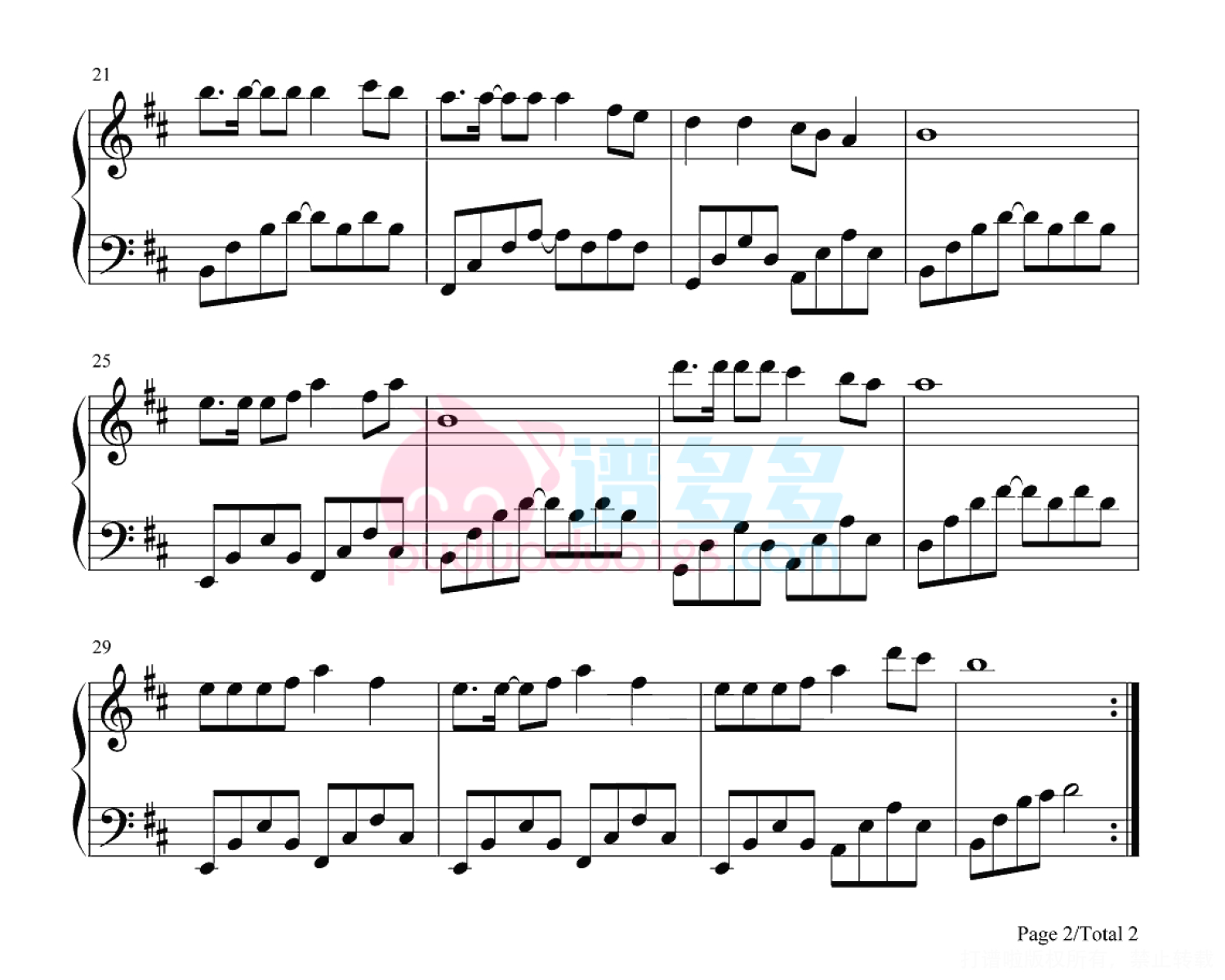 凡是琴谱网站内的版权保护水印,打印时,都会无水印。