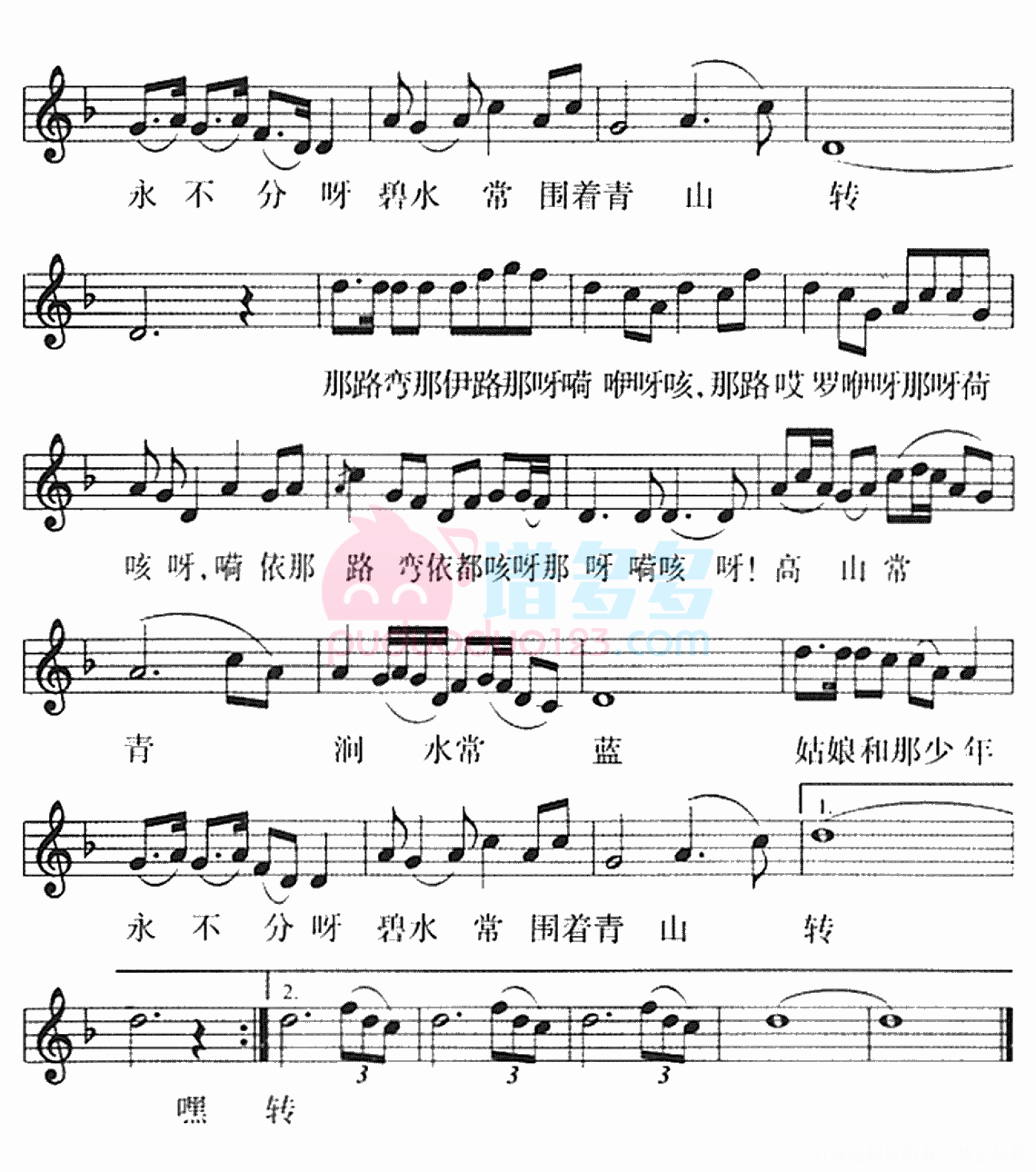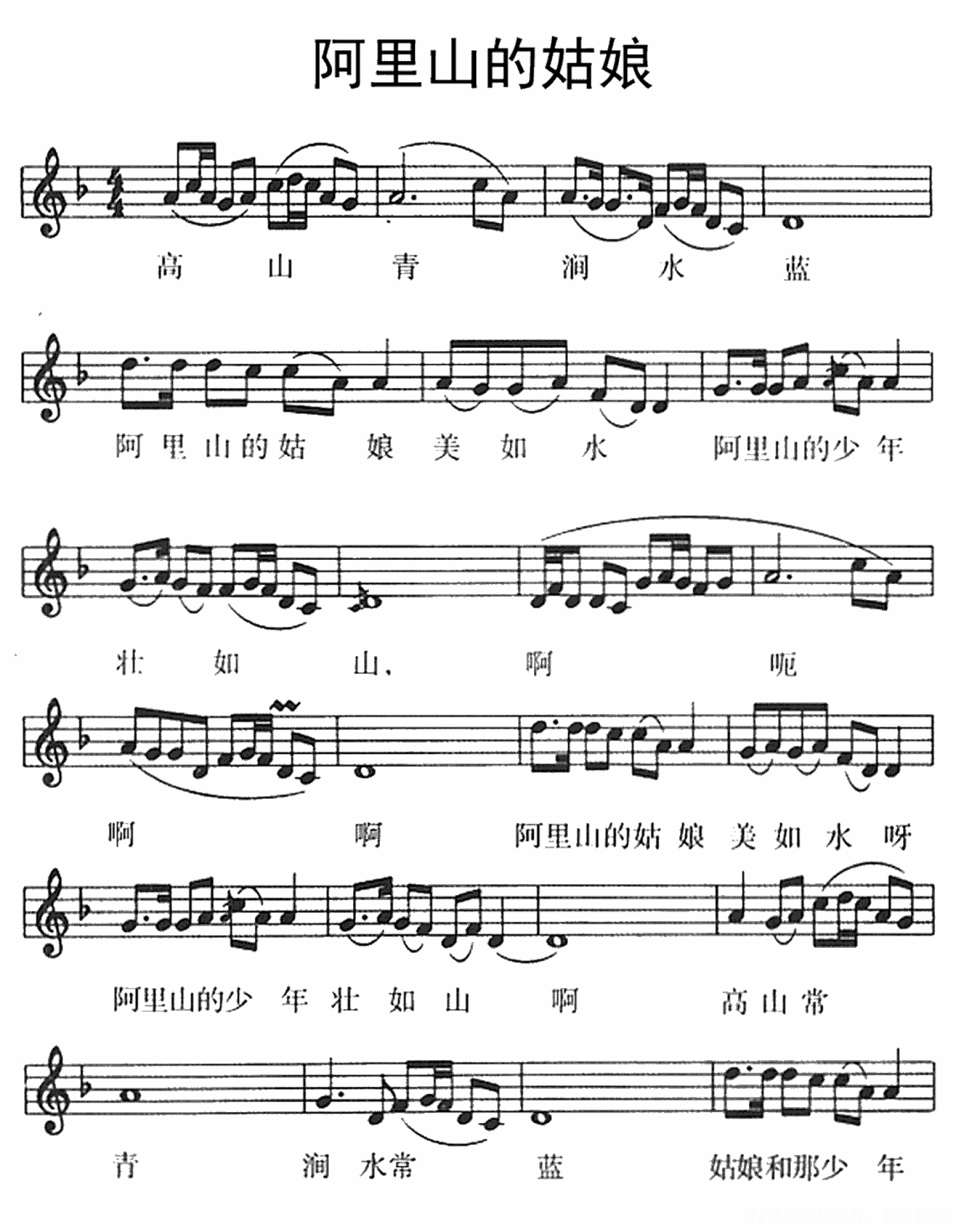 阿里山的姑娘钢琴谱 - 台湾高山族民歌