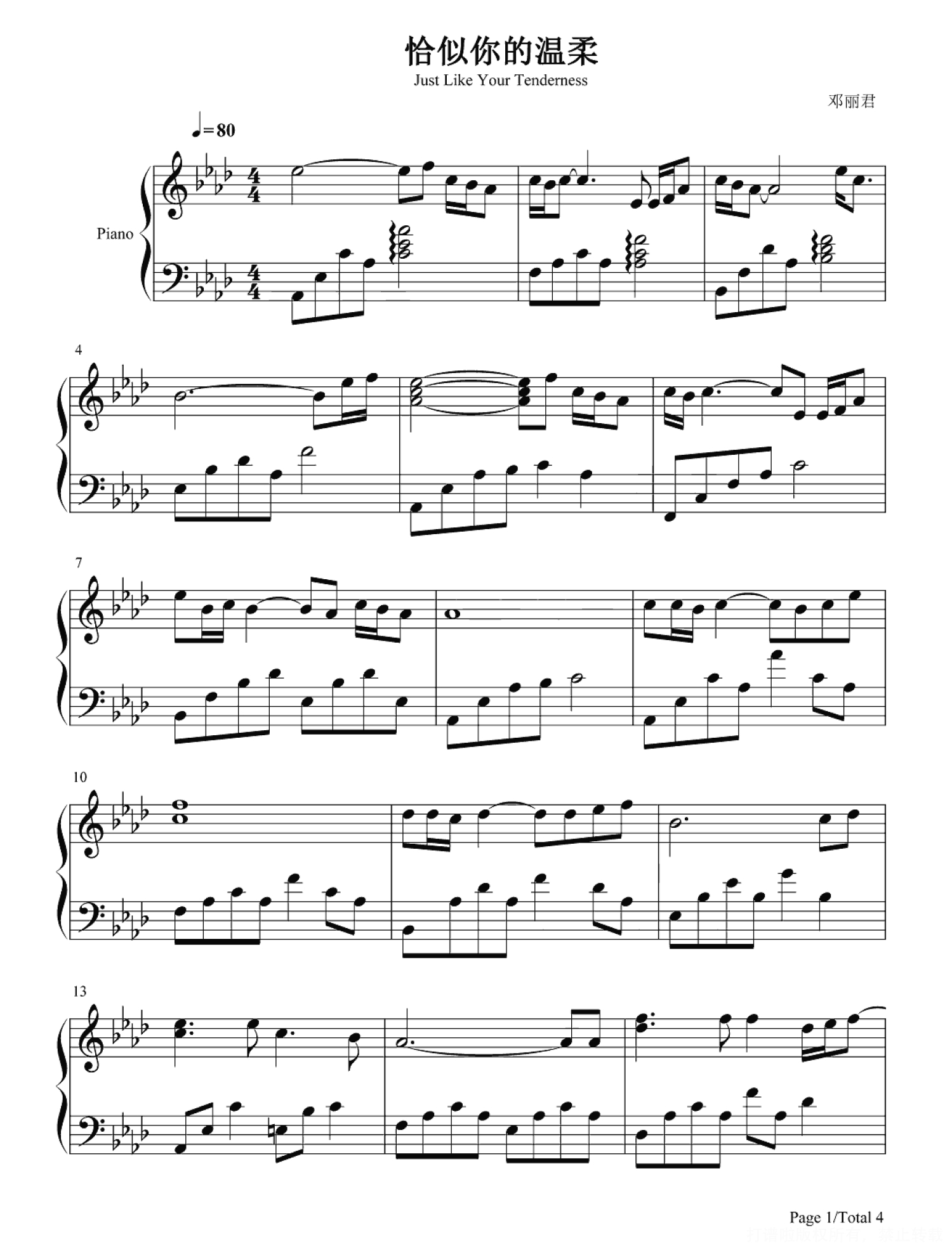恰似你的温柔钢琴谱 - 邓丽君