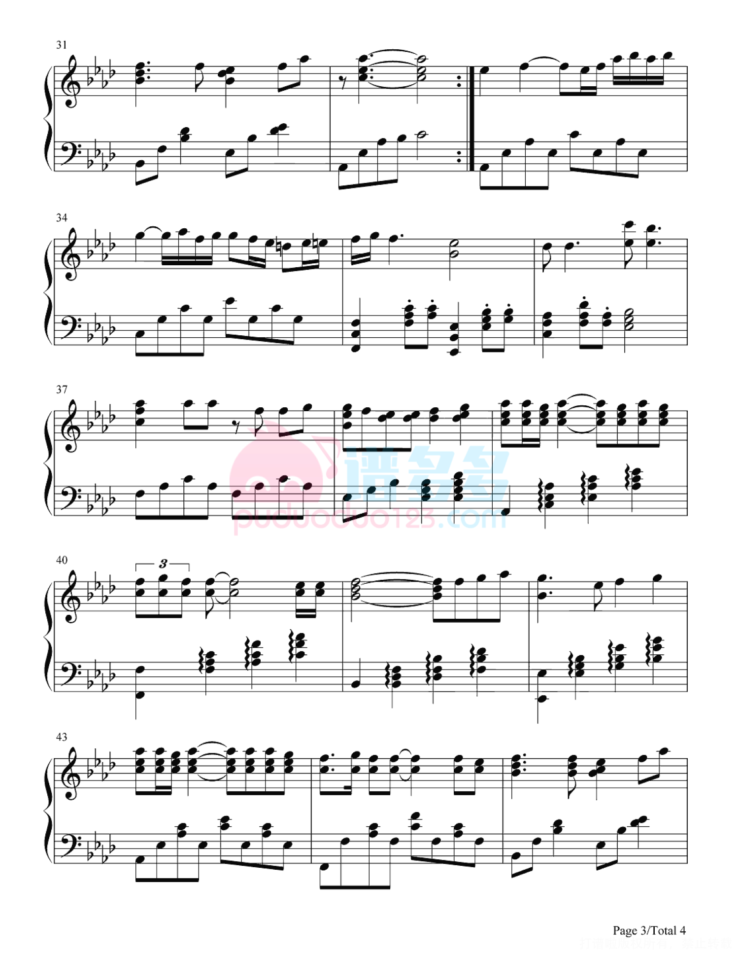 凡是琴谱网站内的版权保护水印,打印时,都会无水印。