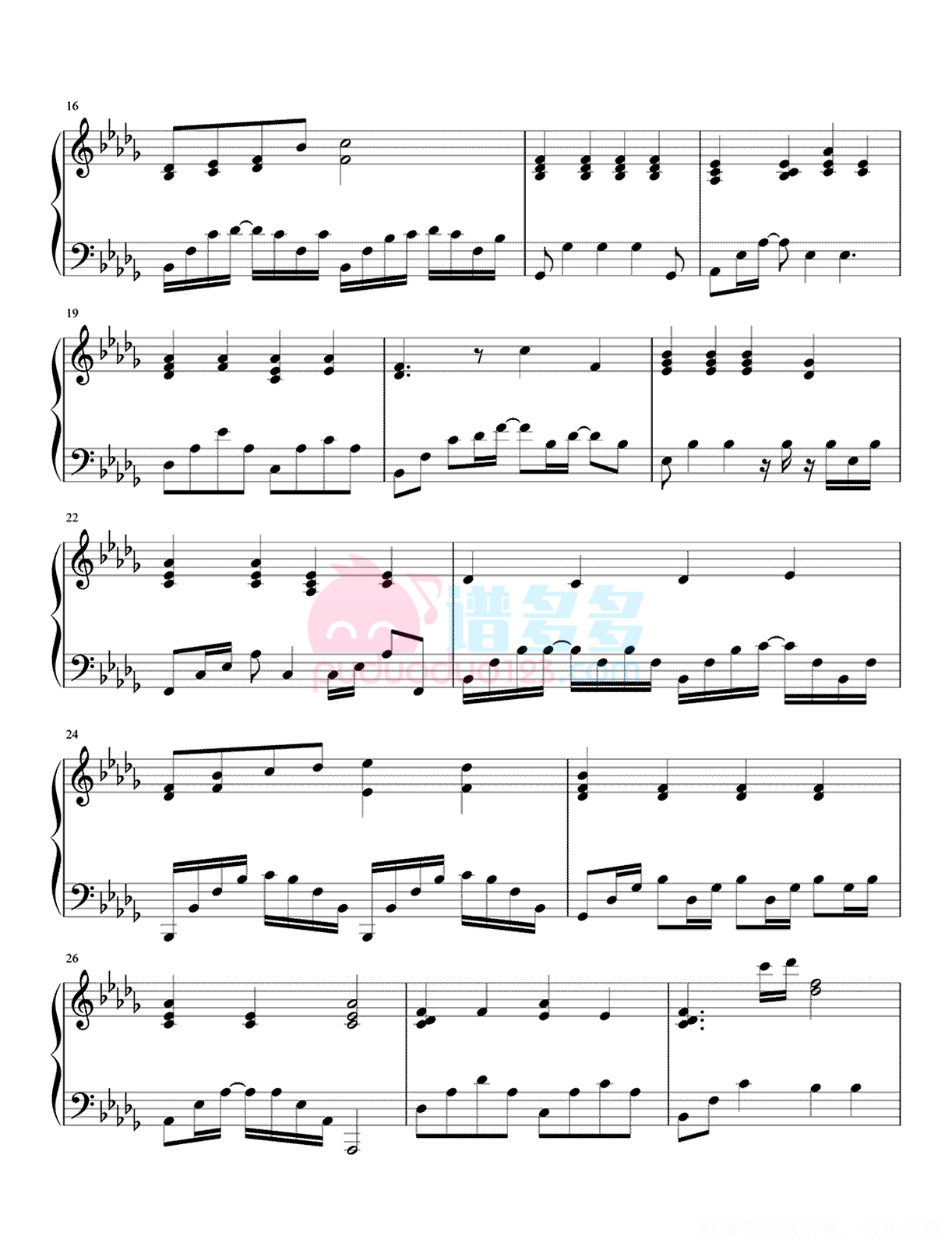 凡是琴谱网站内的版权保护水印,打印时,都会无水印。