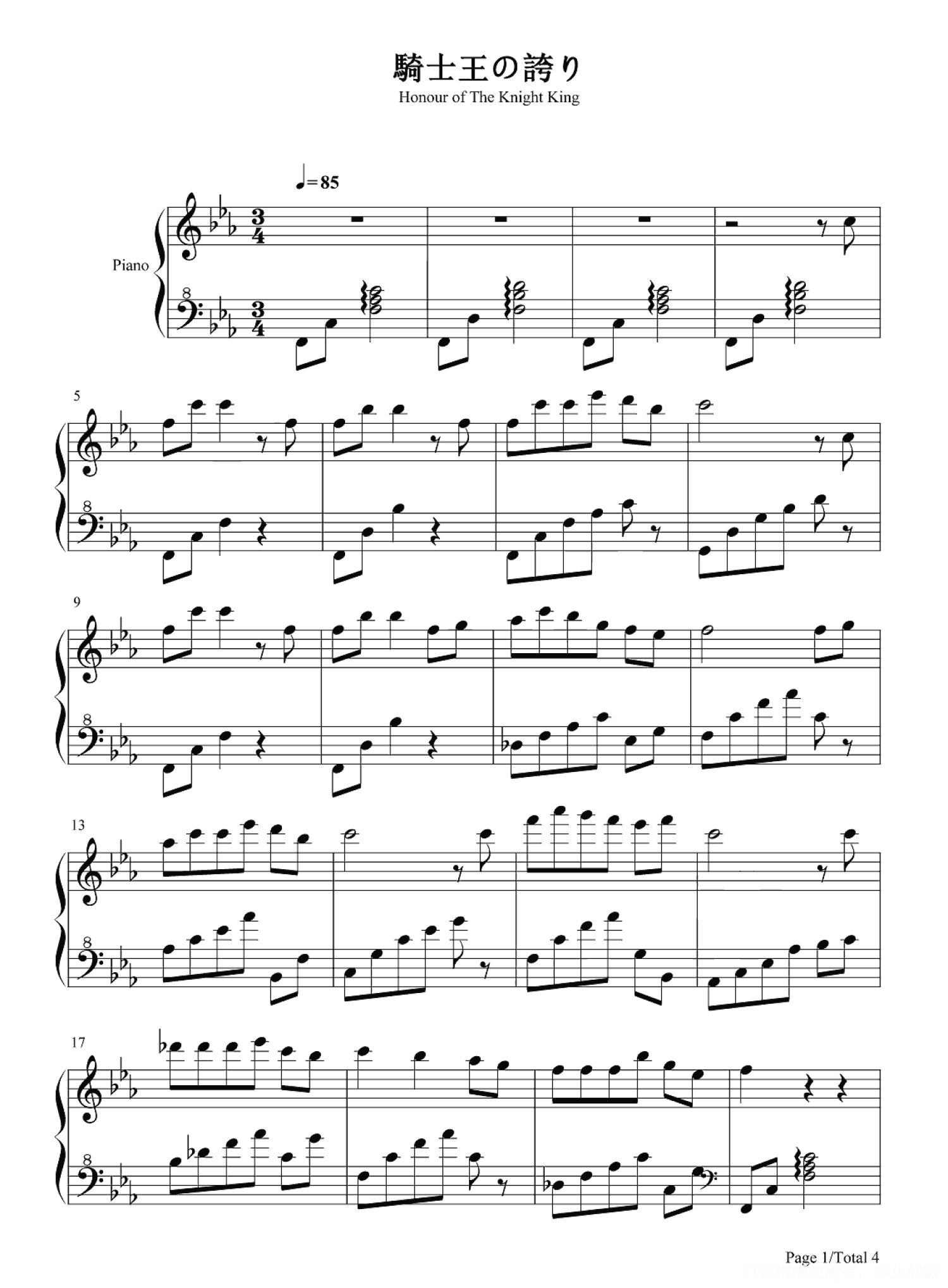 当前位置:琴谱网>钢琴谱>骑士王的荣耀