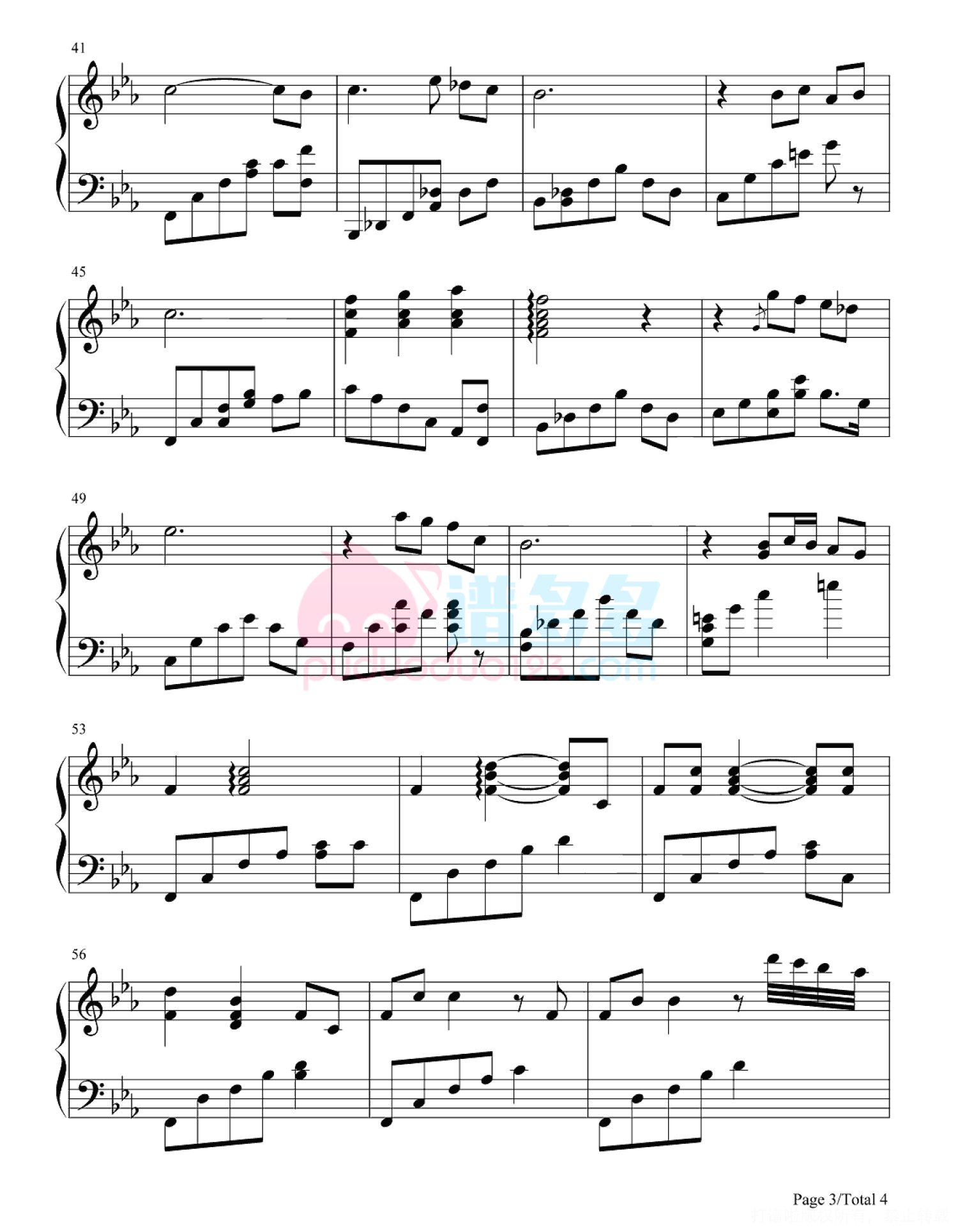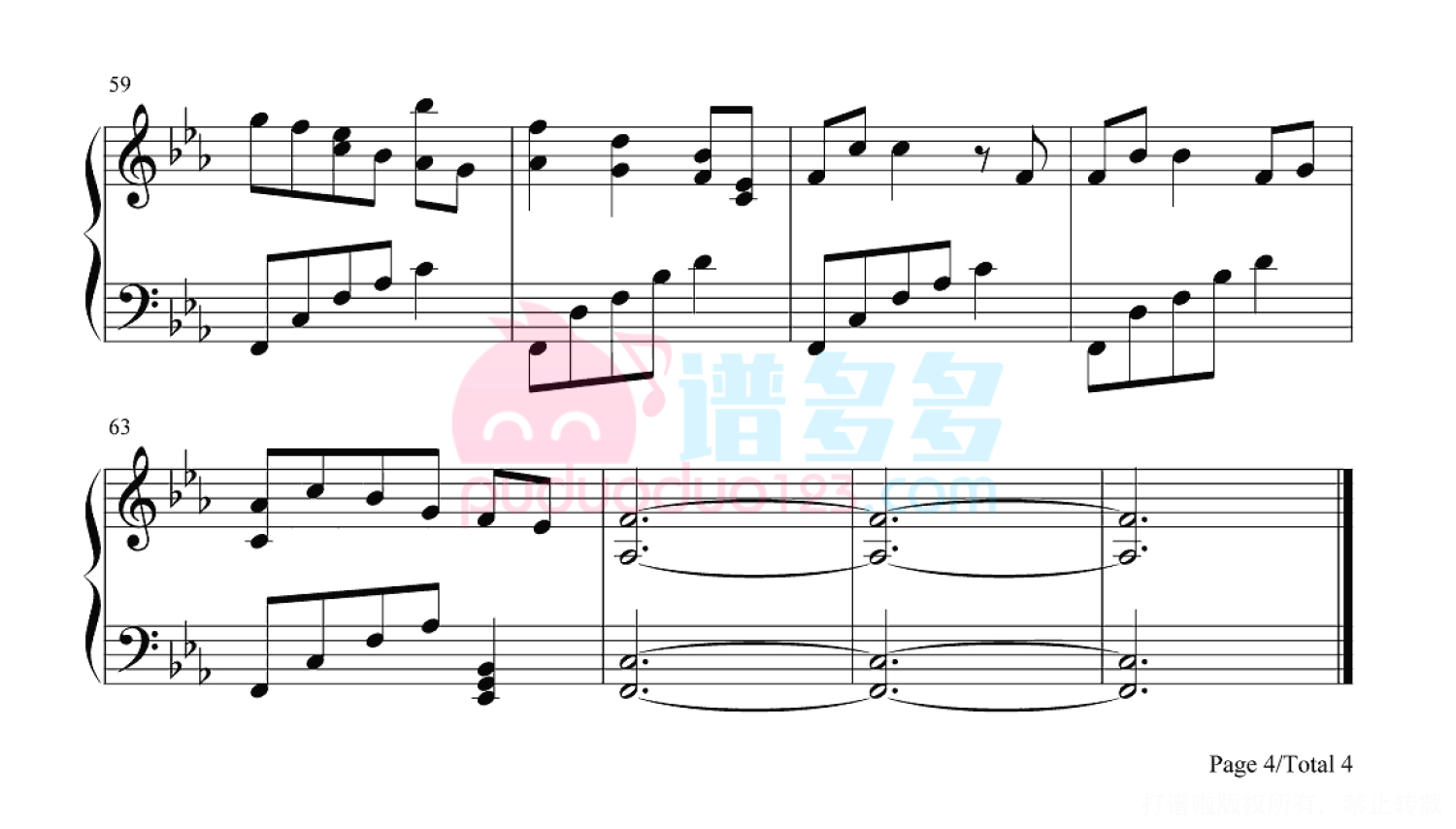 凡是琴谱网站内的版权保护水印,打印时,都会无水印。