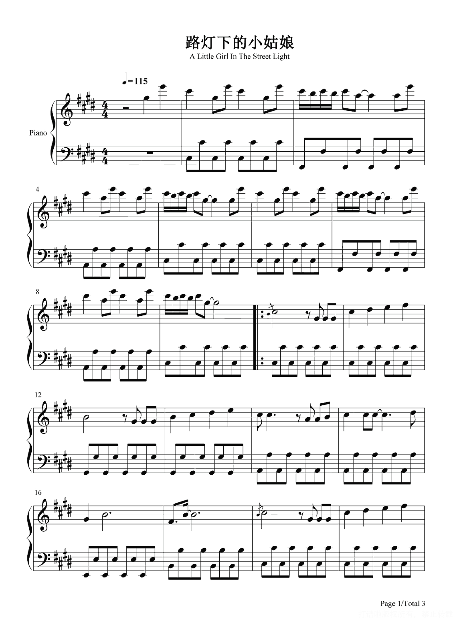 当前位置:琴谱网>钢琴谱>路灯下的小姑娘