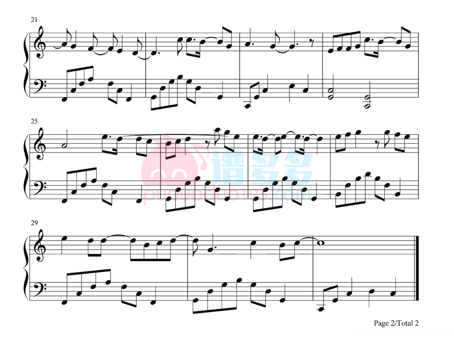 凡是琴谱网站内的版权保护水印,打印时,都会无水印。