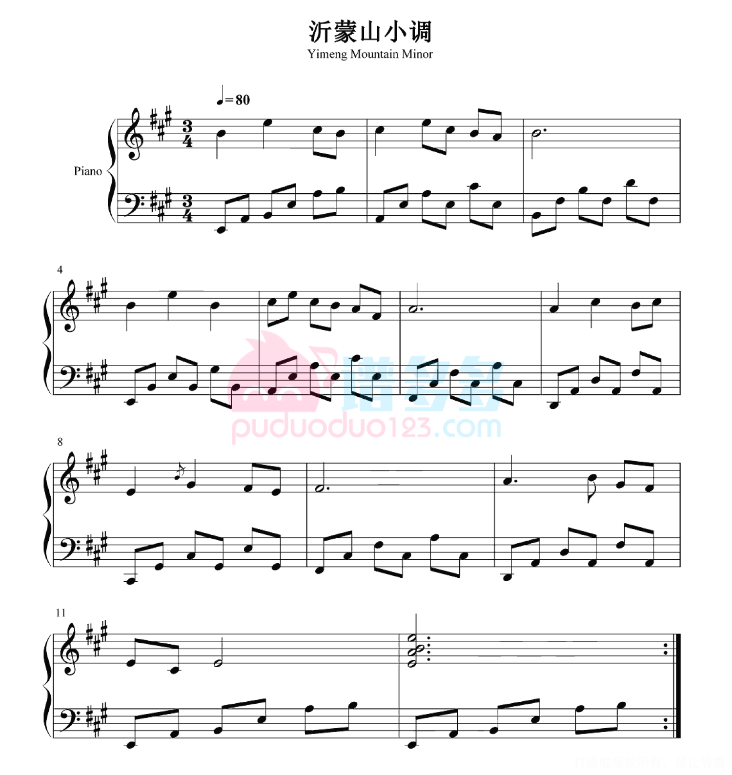 当前位置:琴谱网>钢琴谱>沂蒙山小调