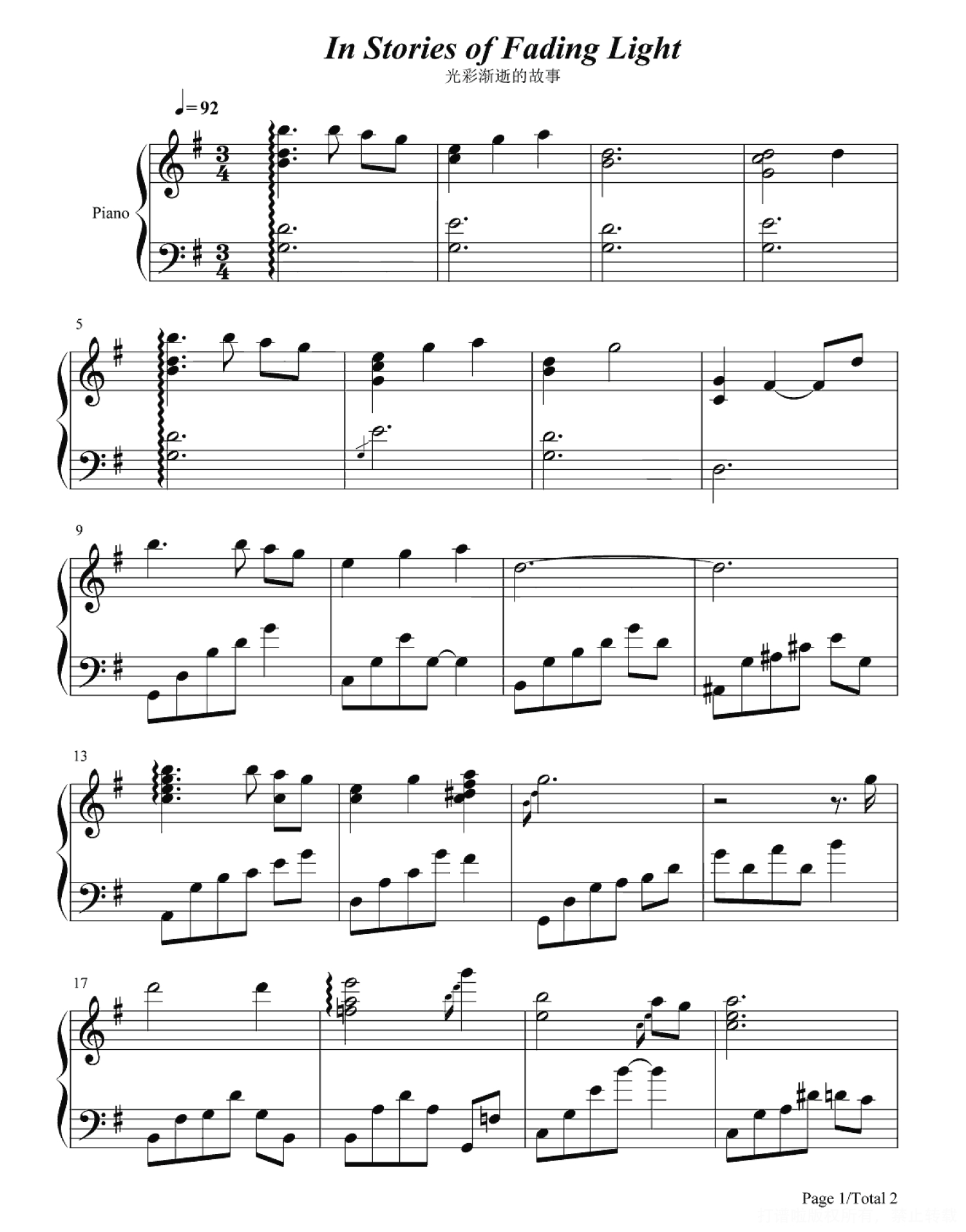 当前位置:琴谱网>钢琴谱>In Stories of Fading Light