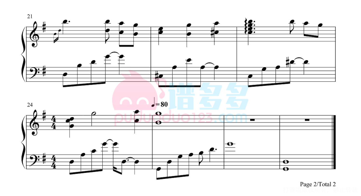 凡是琴谱网站内的版权保护水印,打印时,都会无水印。