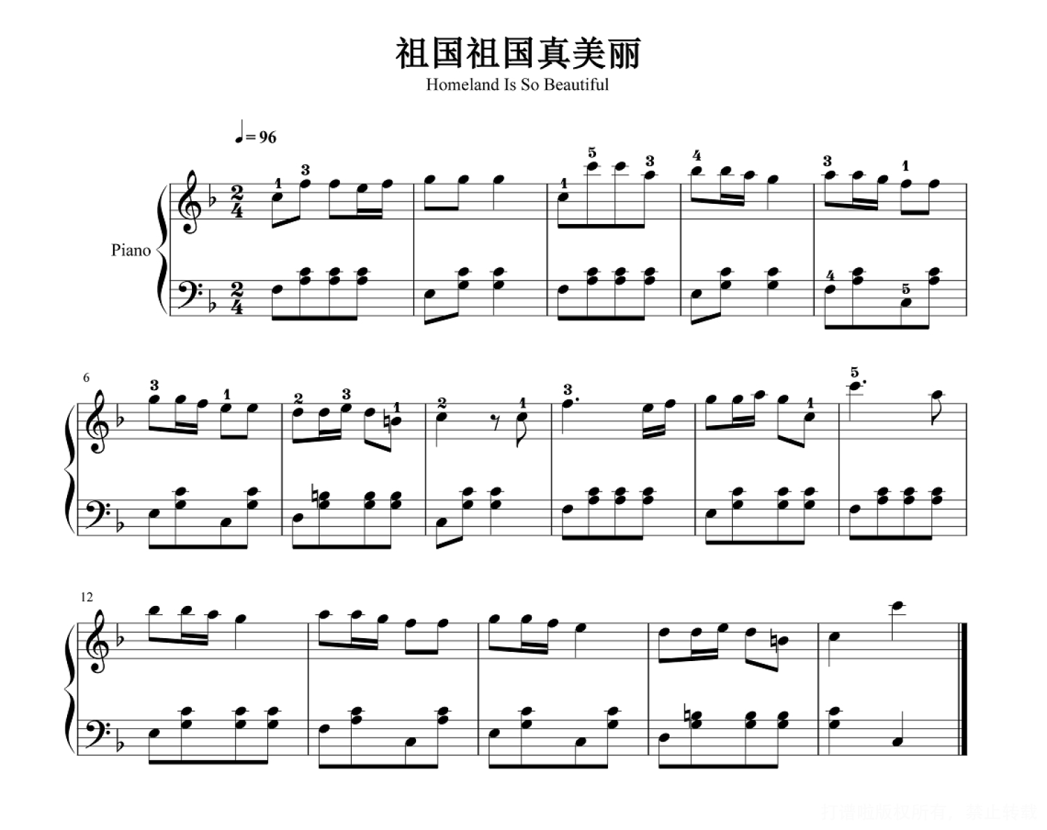 当前位置:琴谱网>钢琴谱>祖国祖国真美丽