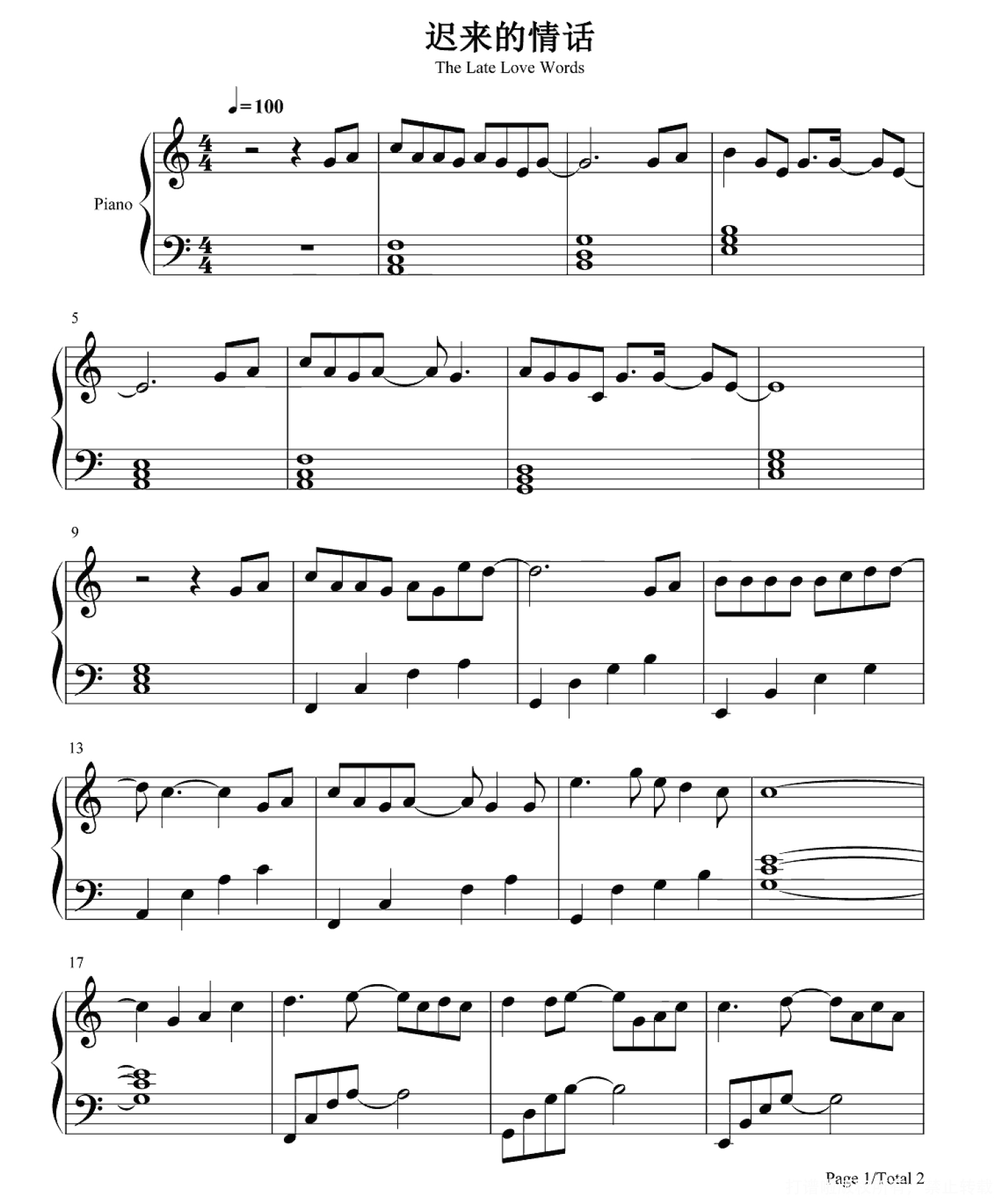 当前位置:琴谱网>钢琴谱>迟来的情话