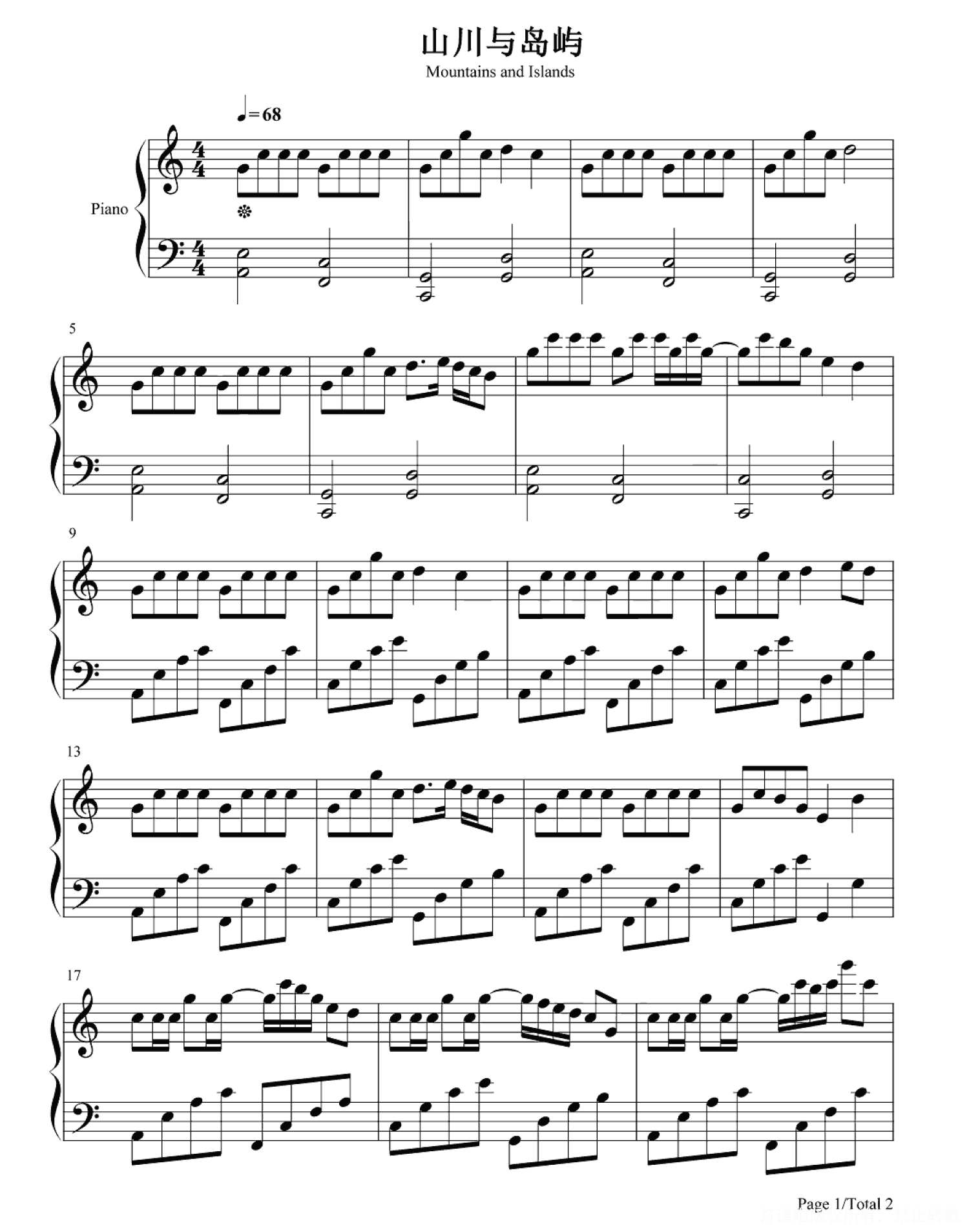 当前位置:琴谱网>钢琴谱>山川与岛屿