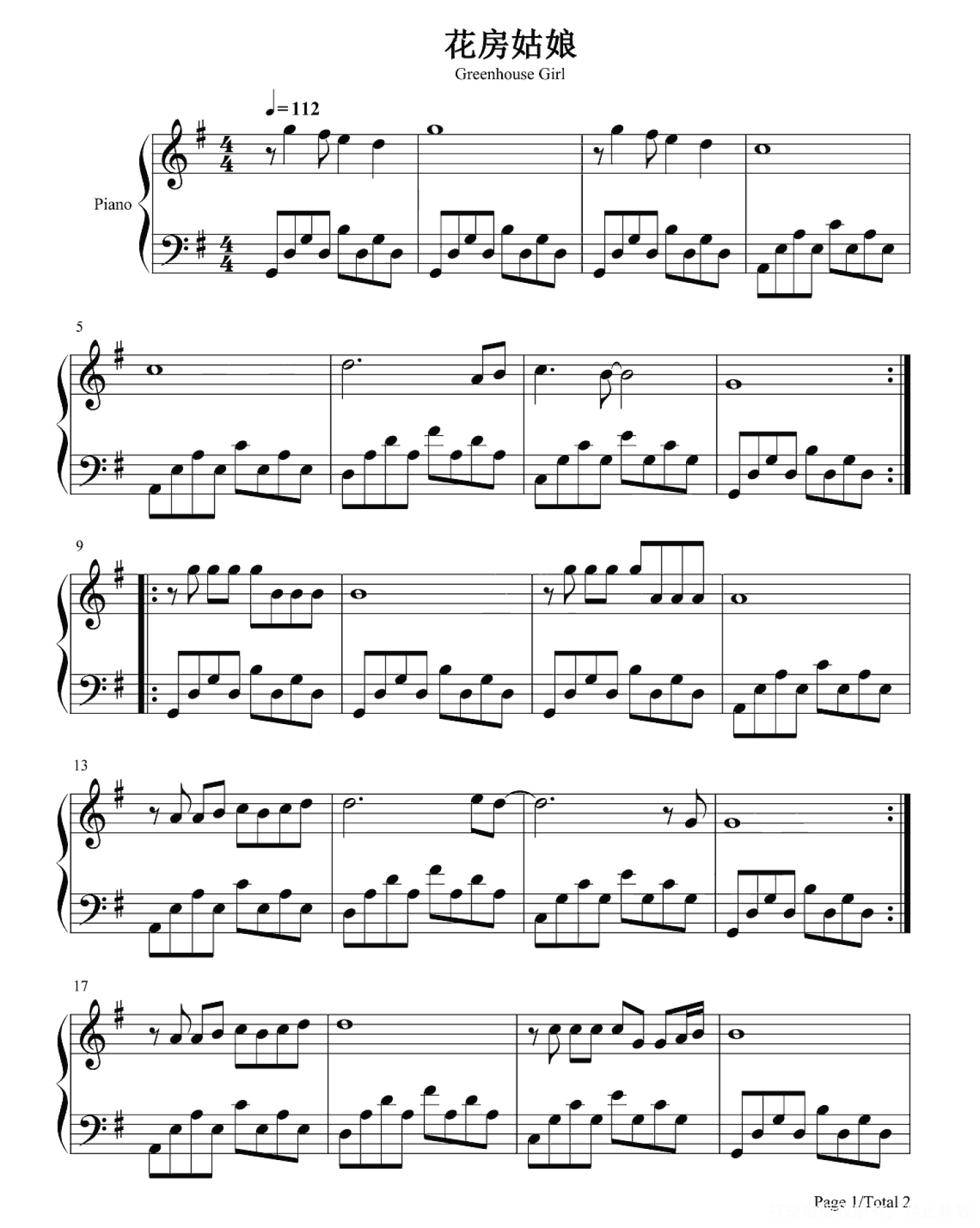 当前位置:琴谱网>钢琴谱>花房姑娘