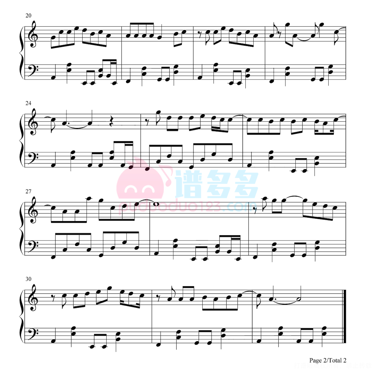 凡是琴谱网站内的版权保护水印,打印时,都会无水印。